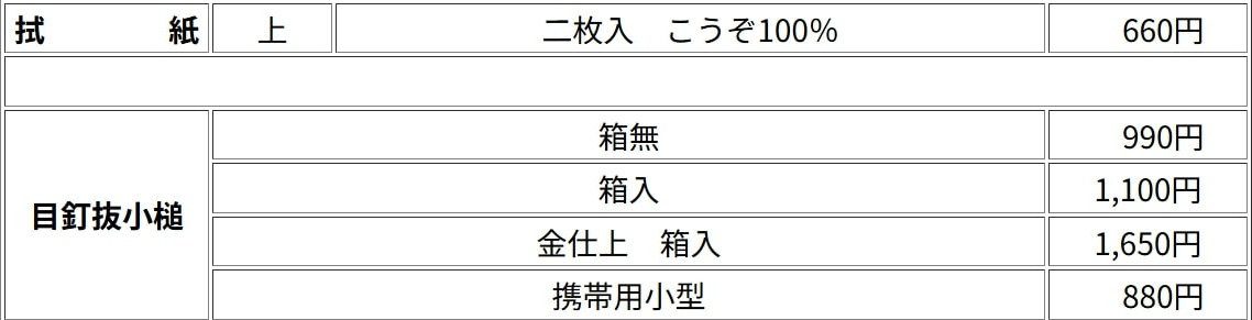 ※価格は時期により変動する場合がございますので予めご了承ください。