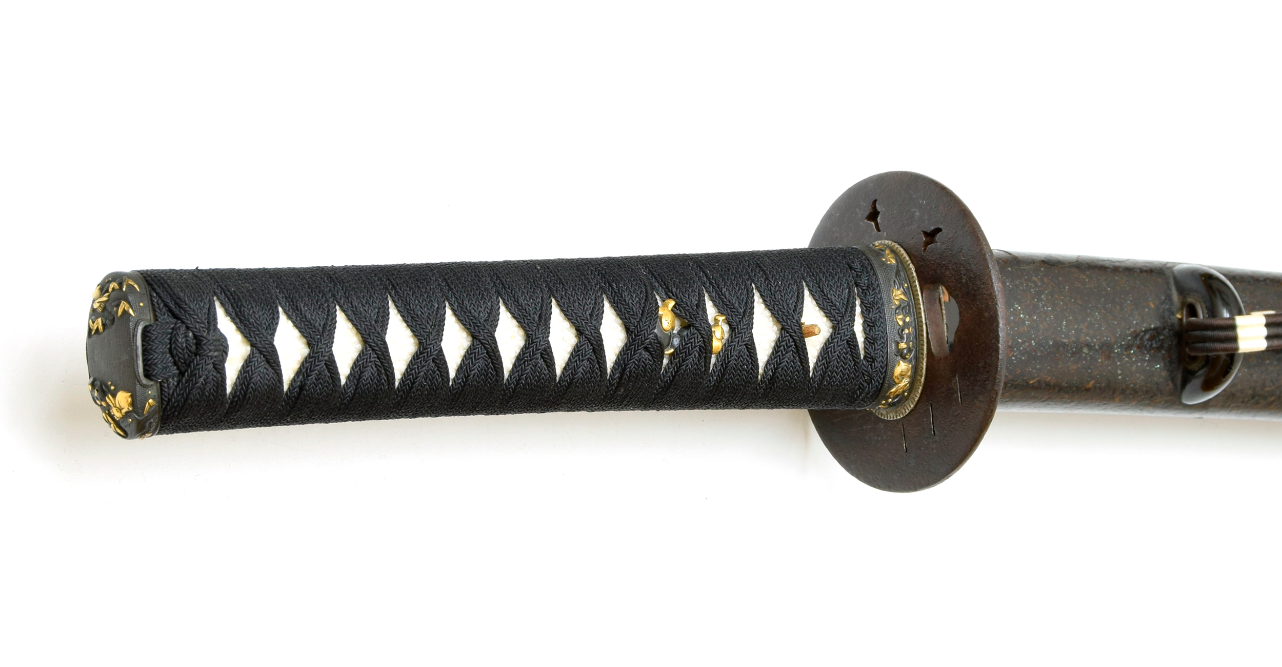 | 付属 | 素銅はばき、青貝散棕櫚変塗鞘打刀拵 |