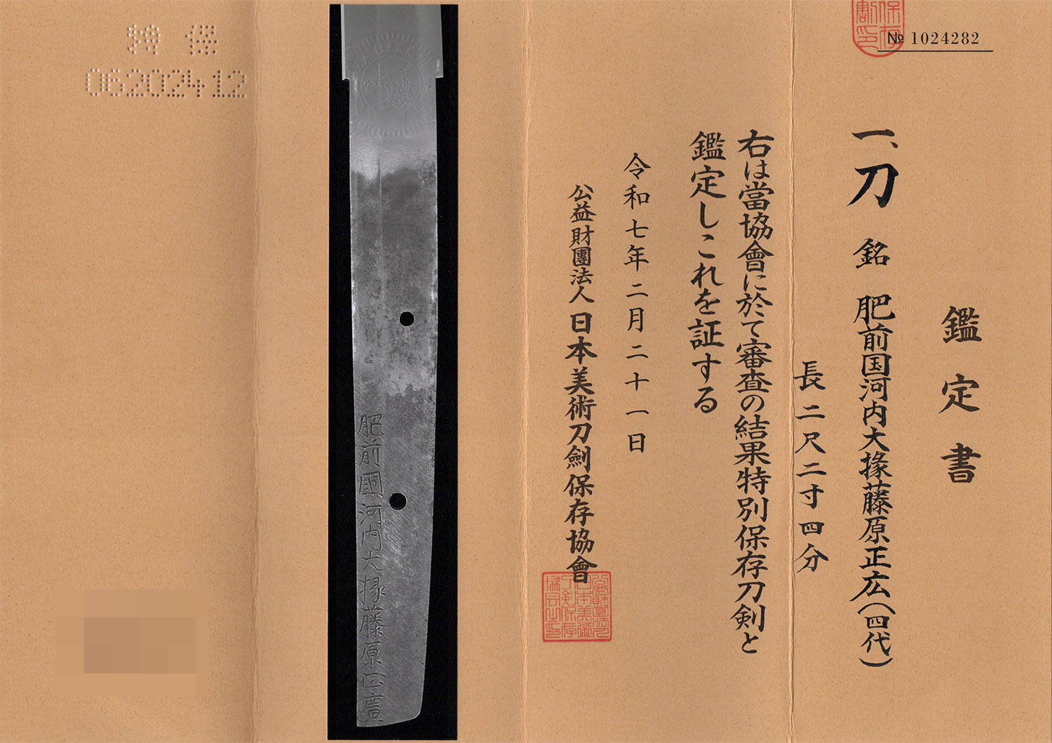 ※特別保存刀剣鑑定書は日本美術刀剣保存協会から届き次第お送り致します。