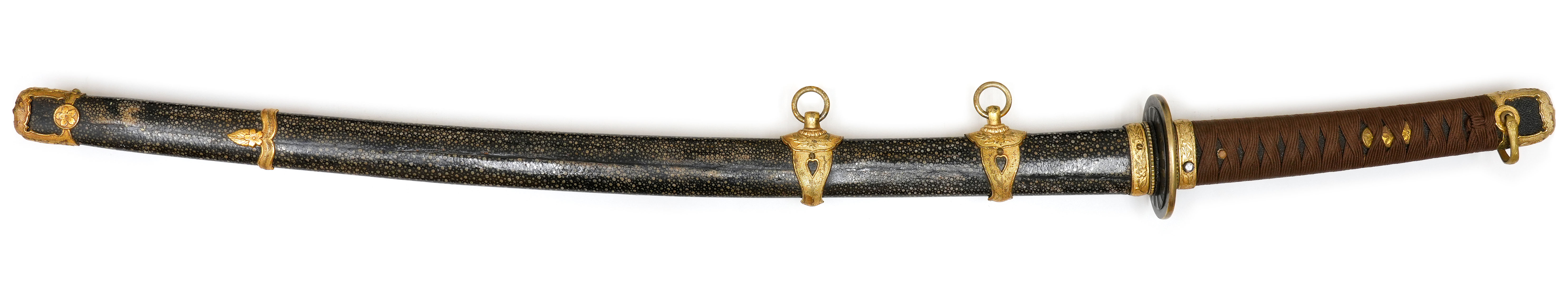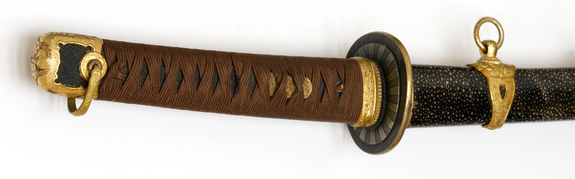海軍太刀型軍刀拵(鮫皮研出鞘)- Tachi type Japanese navy koshirae - 18-021