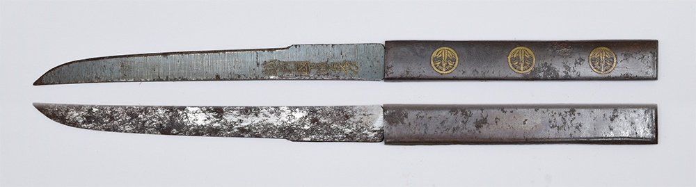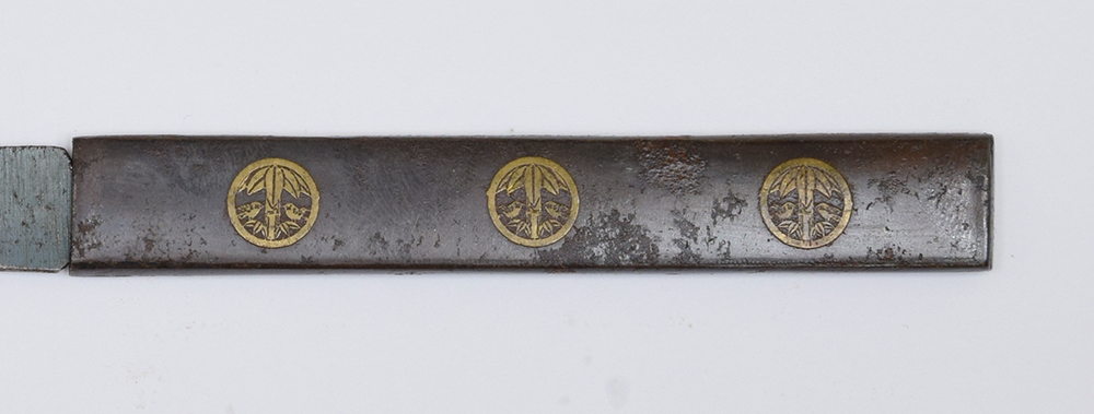 丸に五枚竹笹に雀紋小柄 (穂先付) 無銘Mumei 16-046