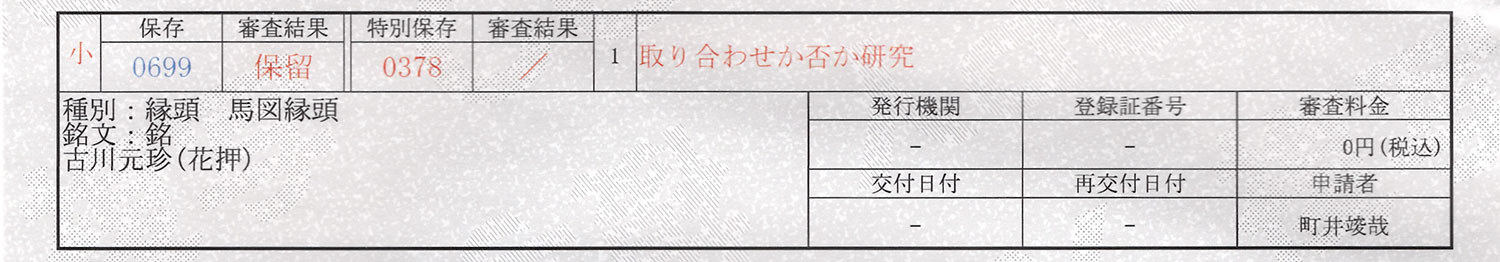 一方で日本美術刀剣保存協会の審査においては、銘は認められつつも「縁と頭の取り合わせに研究の余地あり」として保留となっています。仔細に観察すると、縁と頭で鬣(たてがみ)の鏨遣い・彫り表現に差異が見られ、この点が取り合わせへの疑義を招いたものと考えられます。これは同一作者による一揃えでない可能性、あるいは後補・組合せの可能性を示唆する所見となります。