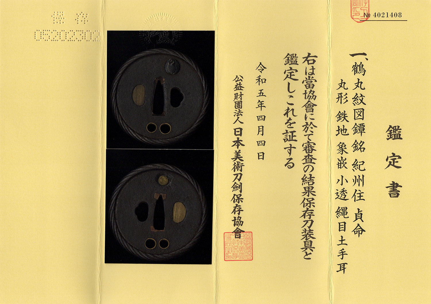 日本美術刀剣保存協会和歌山県支部発行の『紀州の刀装具』所載品。落とし込み桐箱入り。