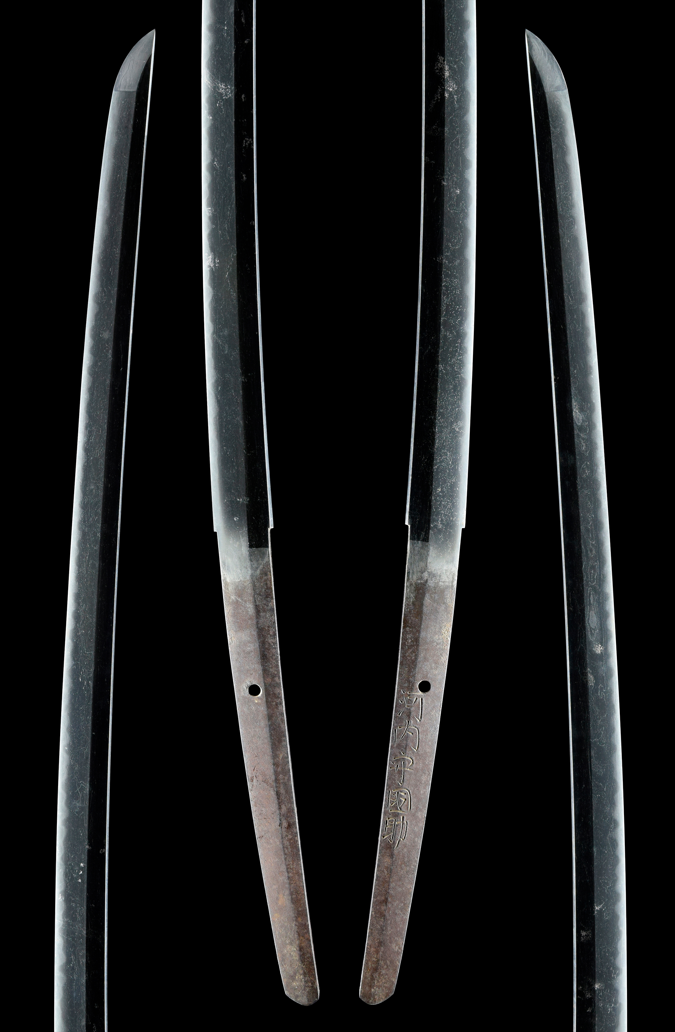 | 付属 | 銀はばき(新調済)、白鞘(共はばき)、黒蝋塗鞘打刀拵 |