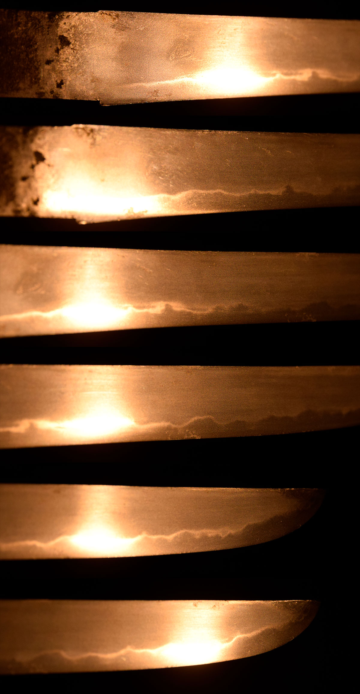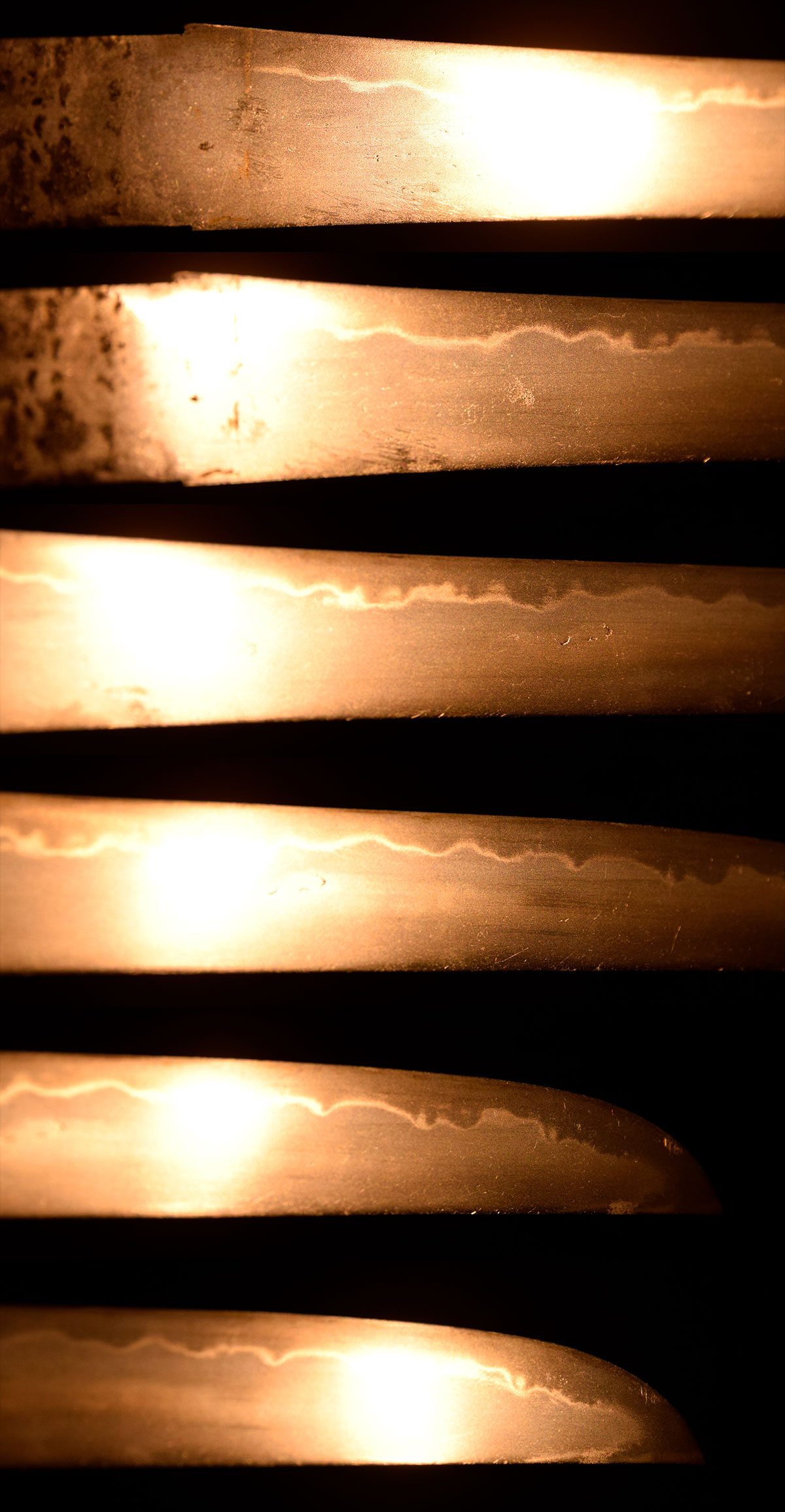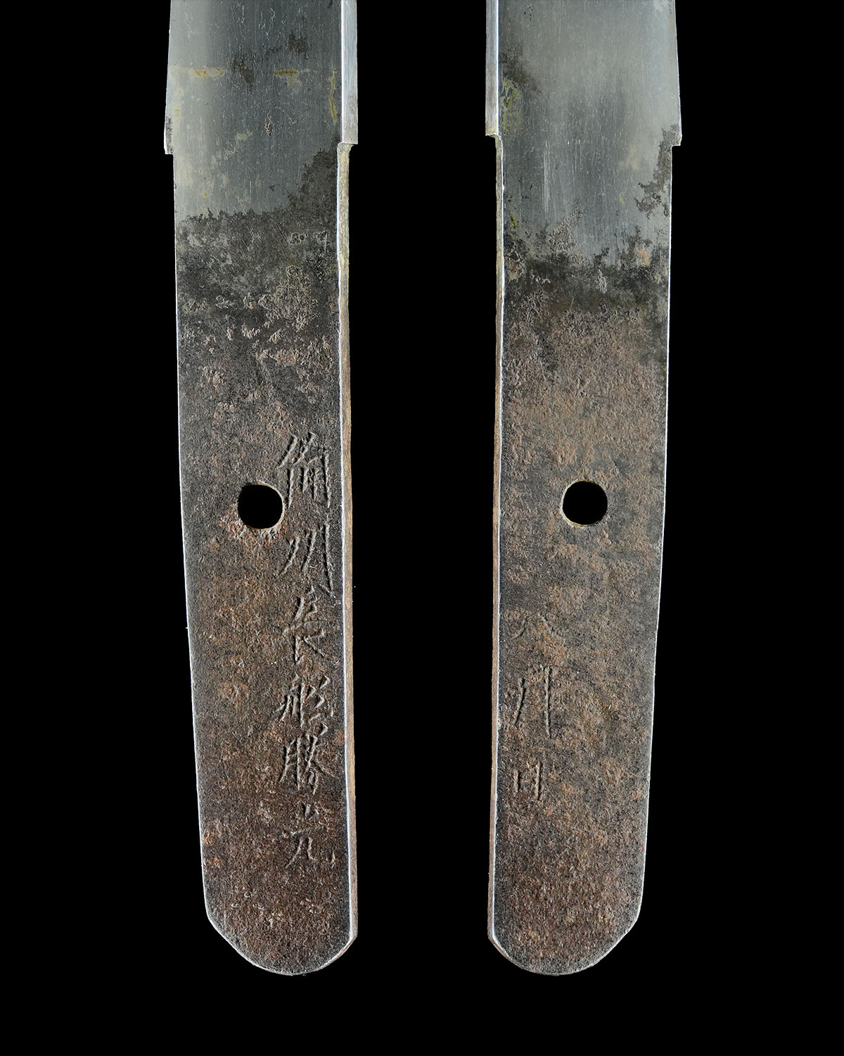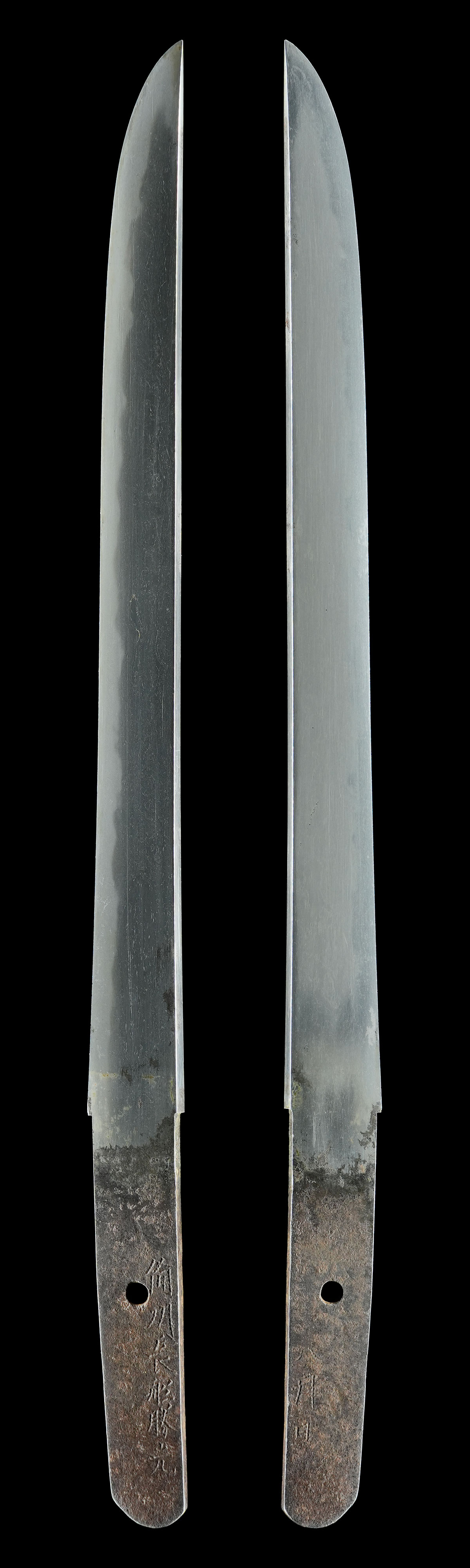 指表は地刃を確認できますが、指裏は素人によって内曇がかけられているため、表裏で色合いが異なります。然るべき研磨を施して御所持下さい。