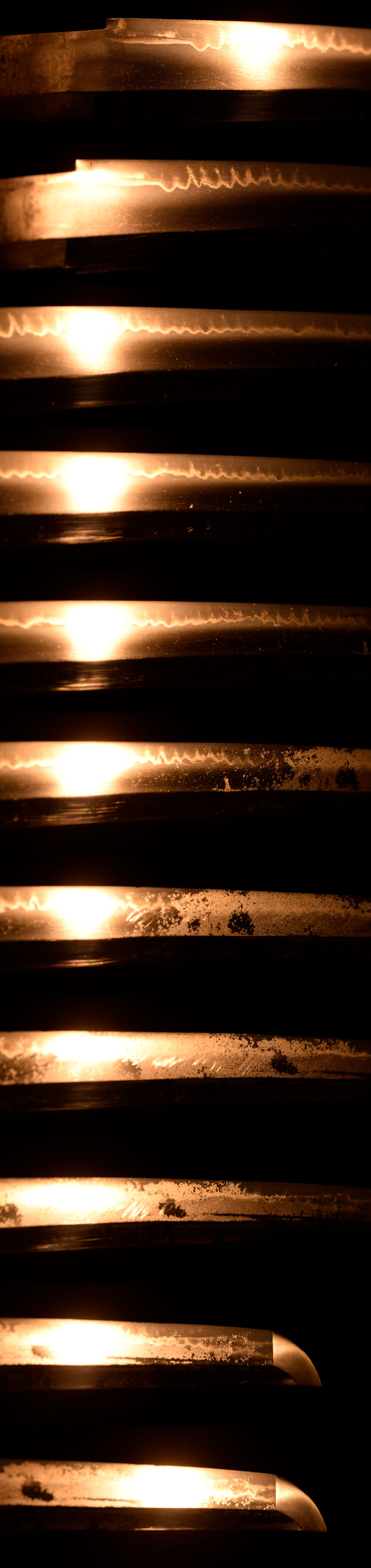 現状では錆や刃こぼれが見られるため、貧相に見えるやもしれませんが、研ぎ上がりが期待できる作品です。勝村徳勝辺りで極められるであろうと思われます。