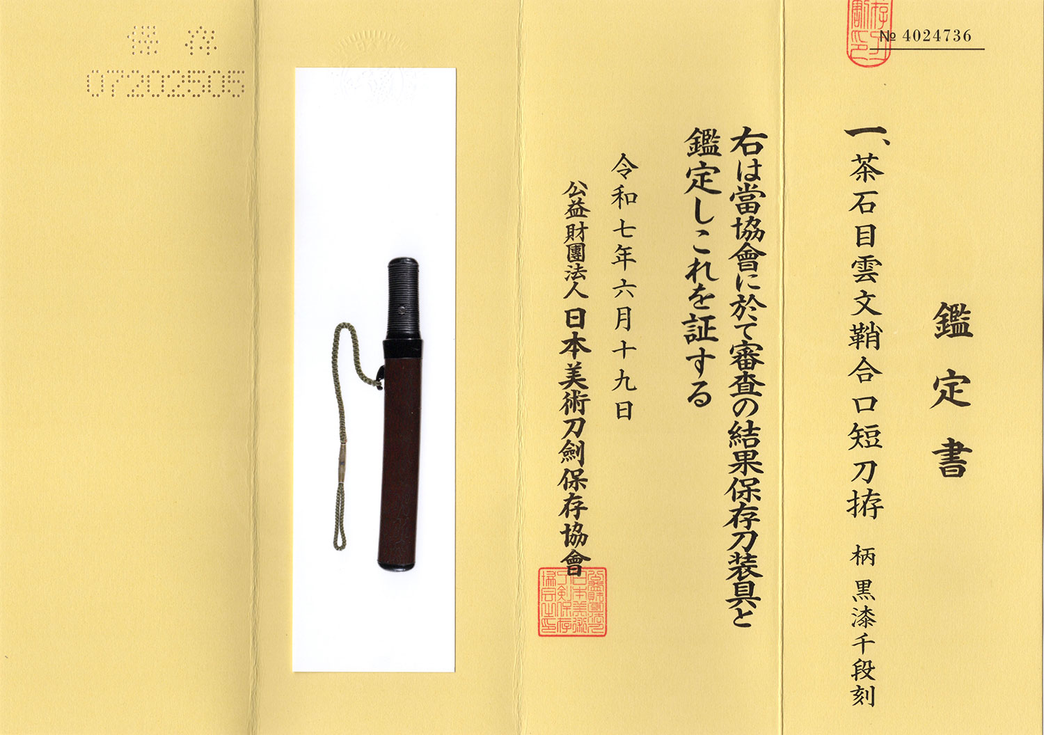 甲種特別貴重刀剣認定書