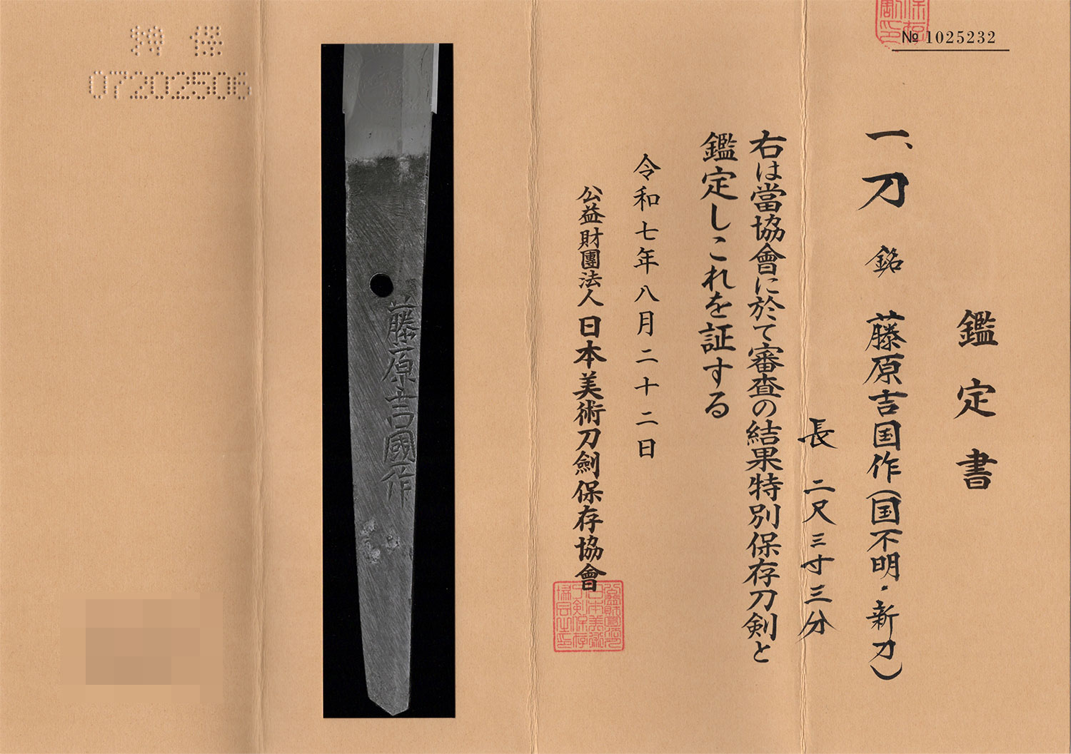 | 鑑定書 | 特別保存刀剣鑑定書 |