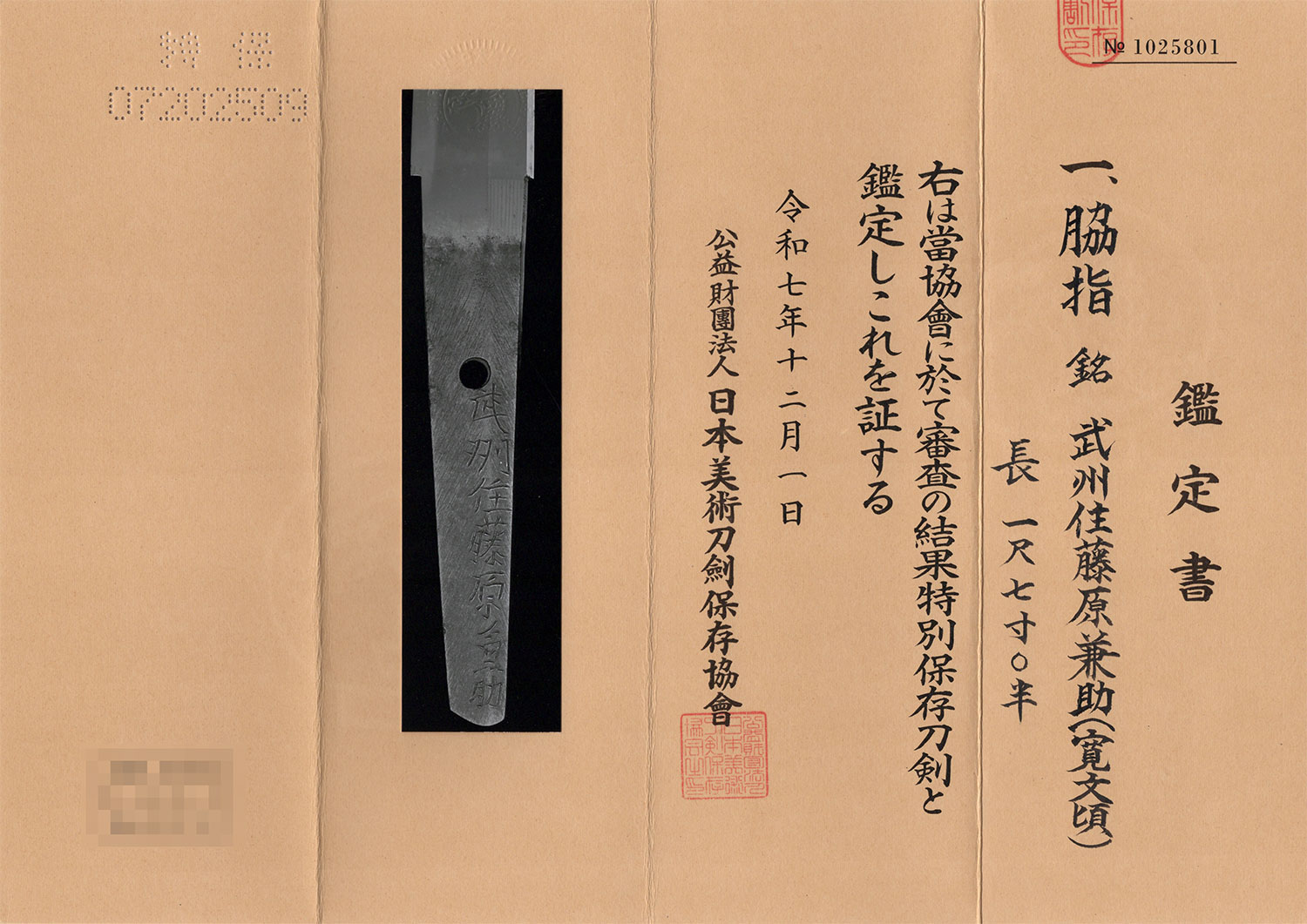 | 鑑定書 | 特別保存刀剣鑑定書 |