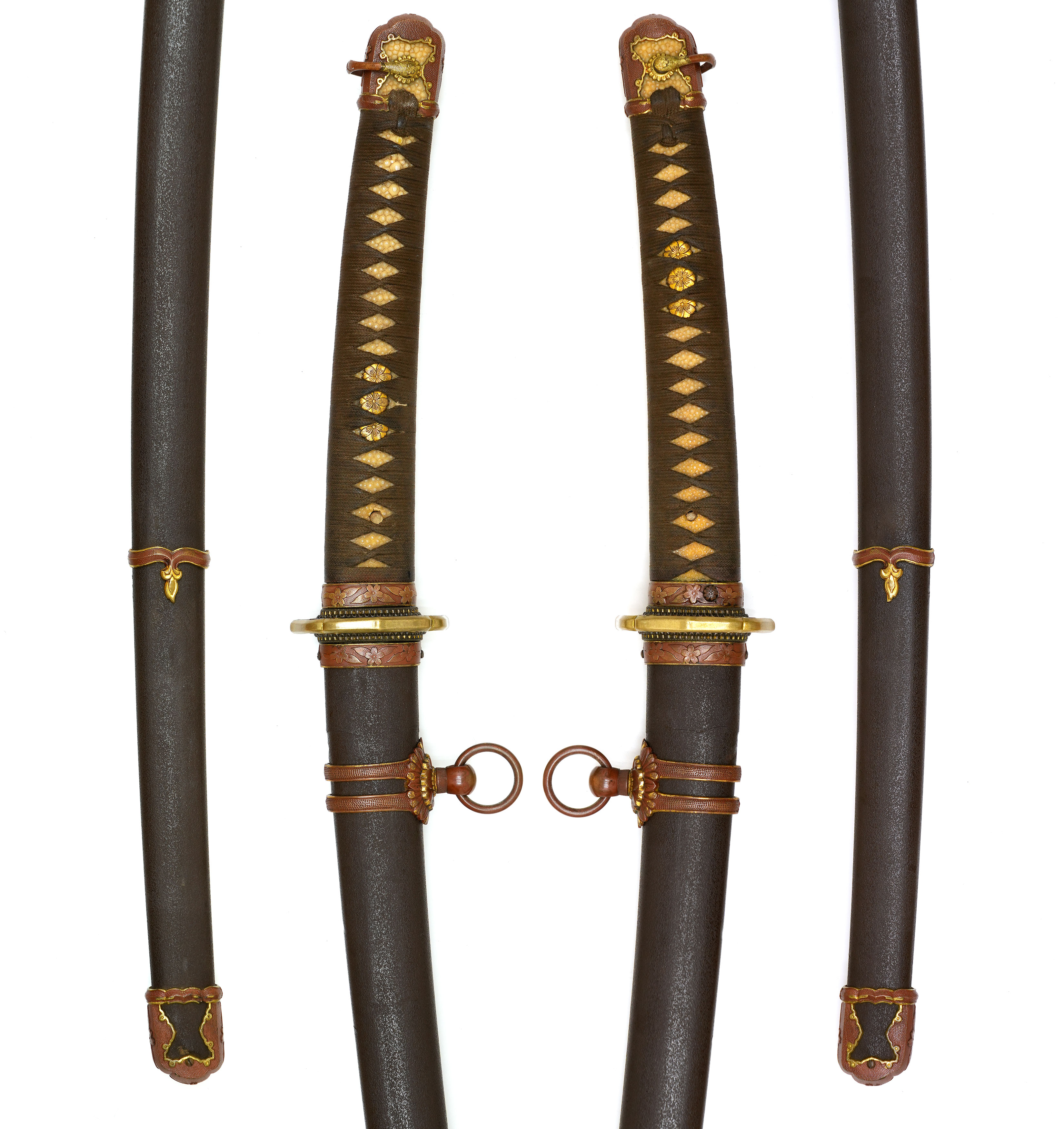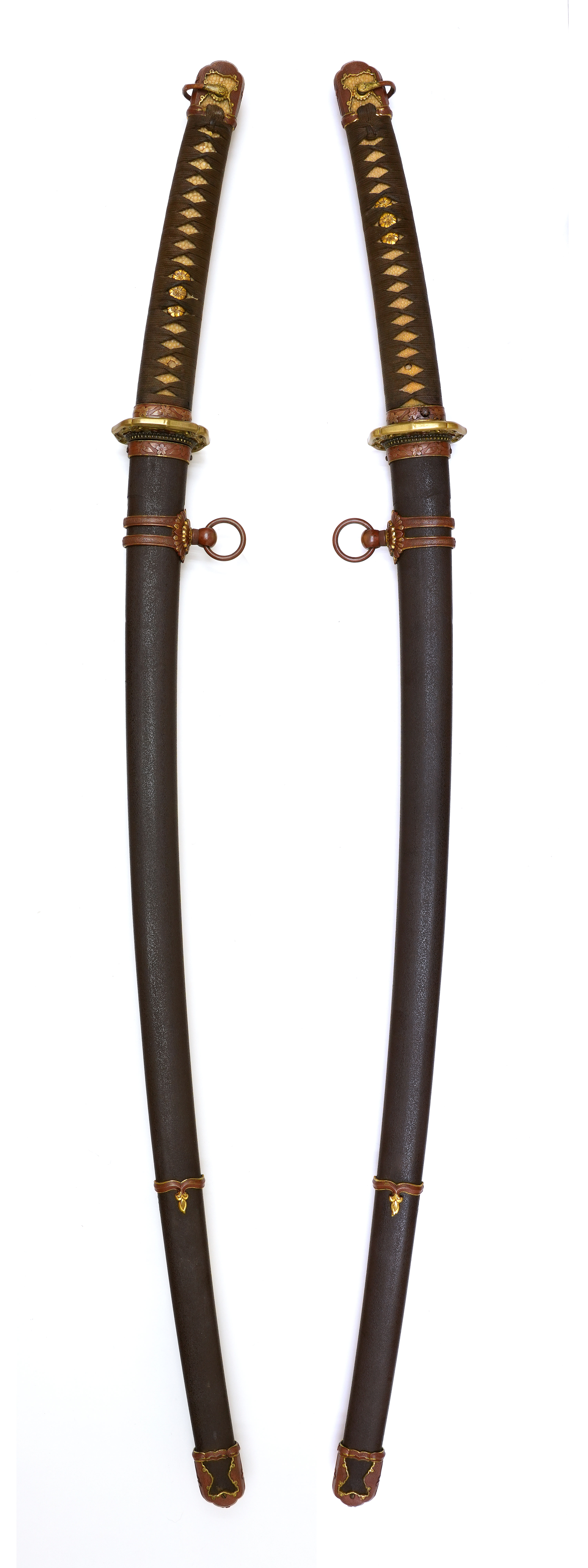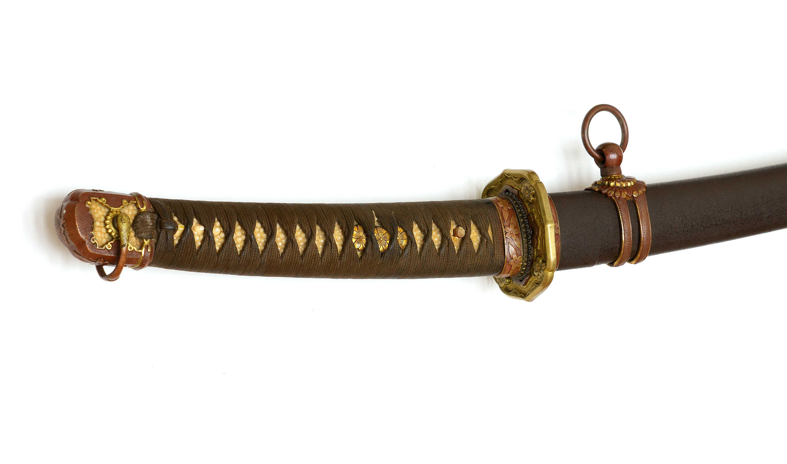 附属 素銅地金鍍金太刀はばき、陸軍九八式軍刀拵(本漆石目塗鞘)
