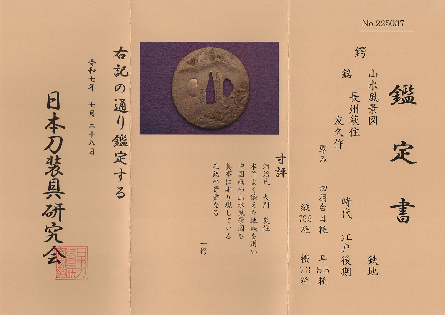 山水風景図鐔 長州萩住友久作Choshu Hagi ju 12-1401