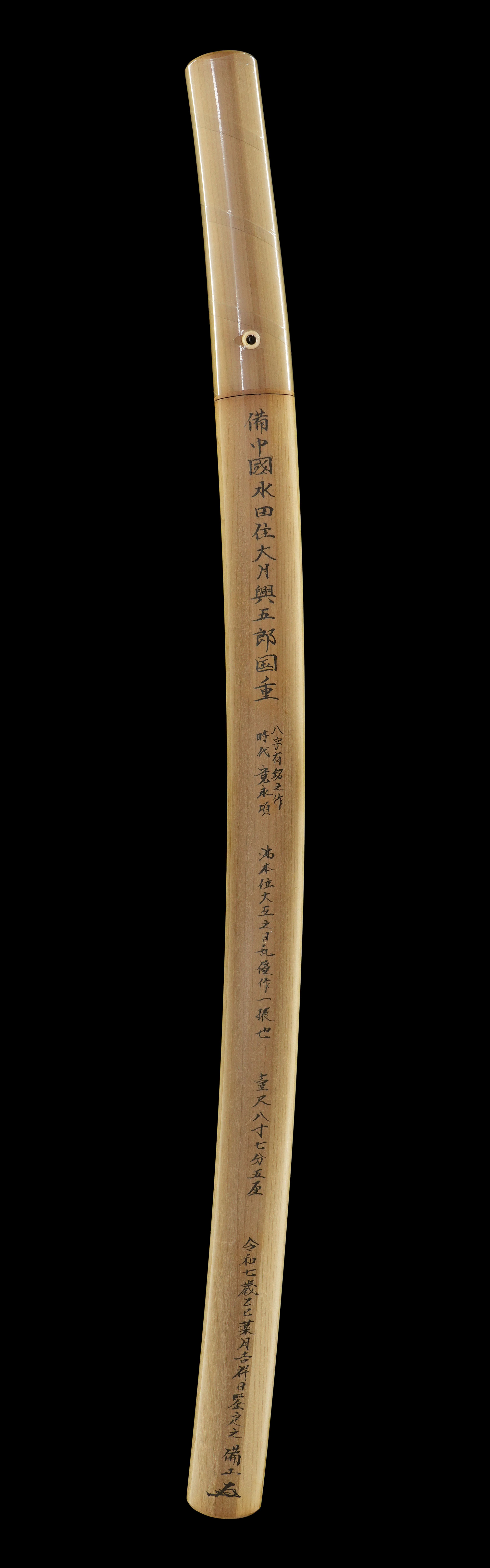 國重の工銘で名高い備中国水田鍛冶は、隣国備後尾道より備中松山城主三村家親に招かれた大月三郎左衛門尉国重、或いは毛利元就に抱えられて芸州郡山城下にて打った大月左兵衛尉国重等が、呰部、水田、荏原を発祥の地として戦国期に活躍し、江戸時代に至っては更に沸を強調した大月與五郎(大與五)國重等が出現するなど大いに栄えました。