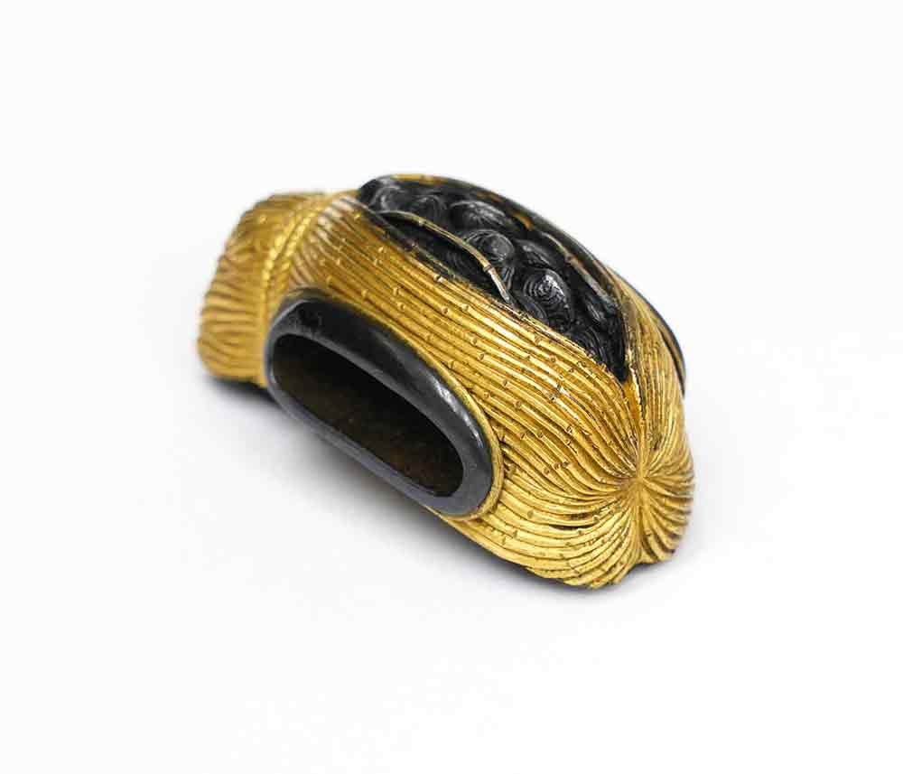 コレクションや鑑賞用として、また拵の脇役としても映える、歴史的風趣と職人技が融合した逸品です。細部まで緻密に彫り上げられた藁苞と蜆の表現は、所有者の鑑賞眼を存分に満たすことでしょう。