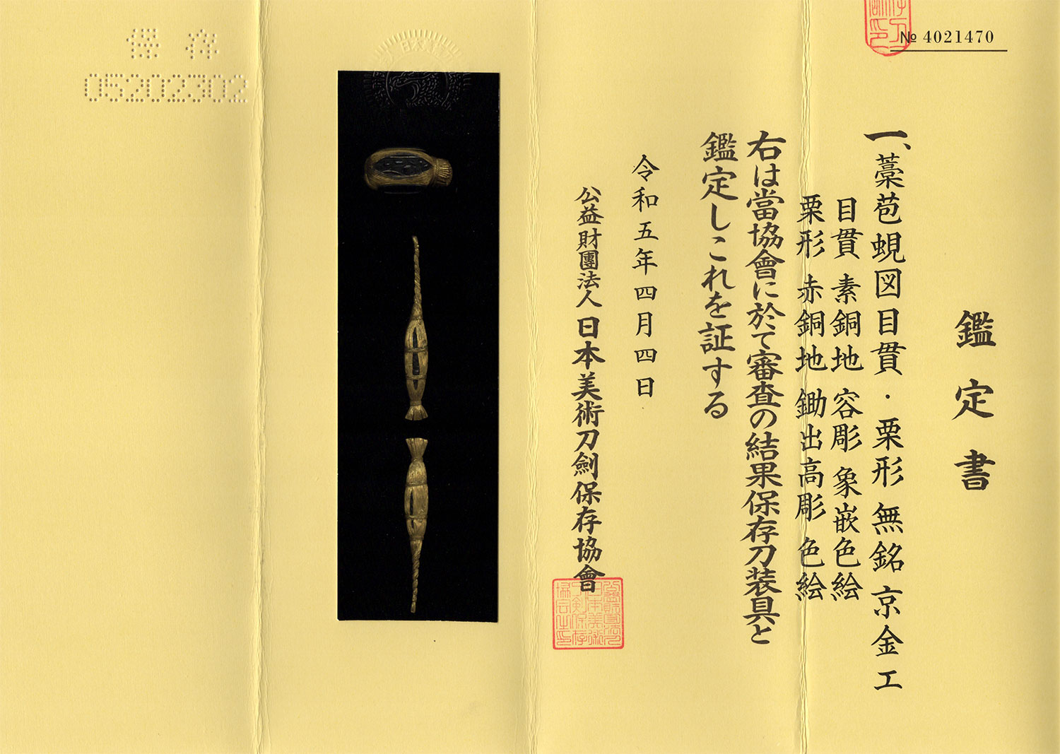 京金工とは、江戸時代に京都で制作された金工品の総称で、特定の流派に属さない広範な作品群を指します。後藤家などの主要流派の影響を受けつつも独自の作風を示す作品に「極め」が付されることが多く、本作もその希少な一例として高い価値を持ちます。