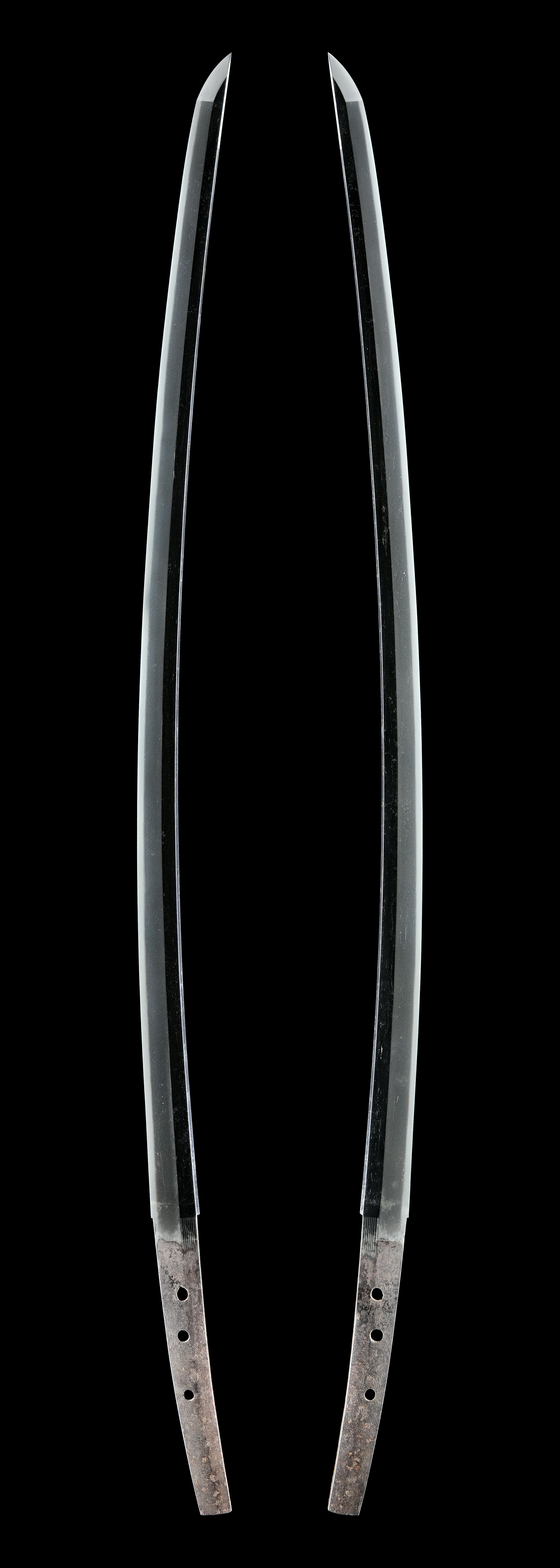この刀は茎の反りを見て頂ければ判るように、元は腰元から強く反った姿であり、磨り上げられた今尚、元先の幅差は開き、切先やや延びた優美な姿態を留めています。地鉄は小板目に杢が交じり、よく錬られて地景入って精美であり、淡く映りごころも見られ、刃文は直刃調に所々高低差少ない湾れを交えた刃取りで、刃中には足が入り、金筋現れ、古雅な雰囲気を漂わせています。鋩子は直ぐに先丸く返るように繕われていますが、長い年月愛用されて来たからでしょう。鋩子内の焼刃は抜けていますが、日本美術刀剣保存協会では古い九州物で特に出来優れた作品に了戒家能の個銘極めを行いますので、本刀の出来も美術鑑賞刀として申し分ない完成度です。