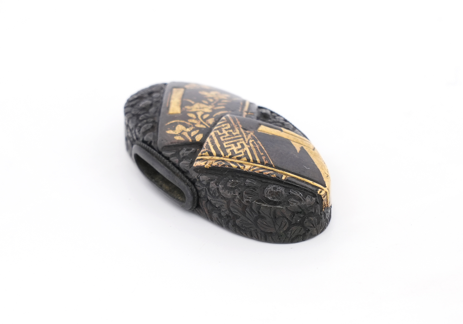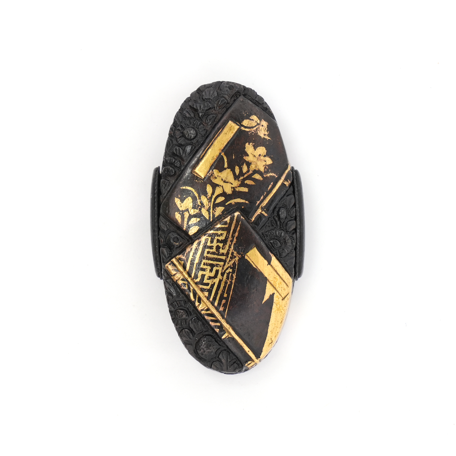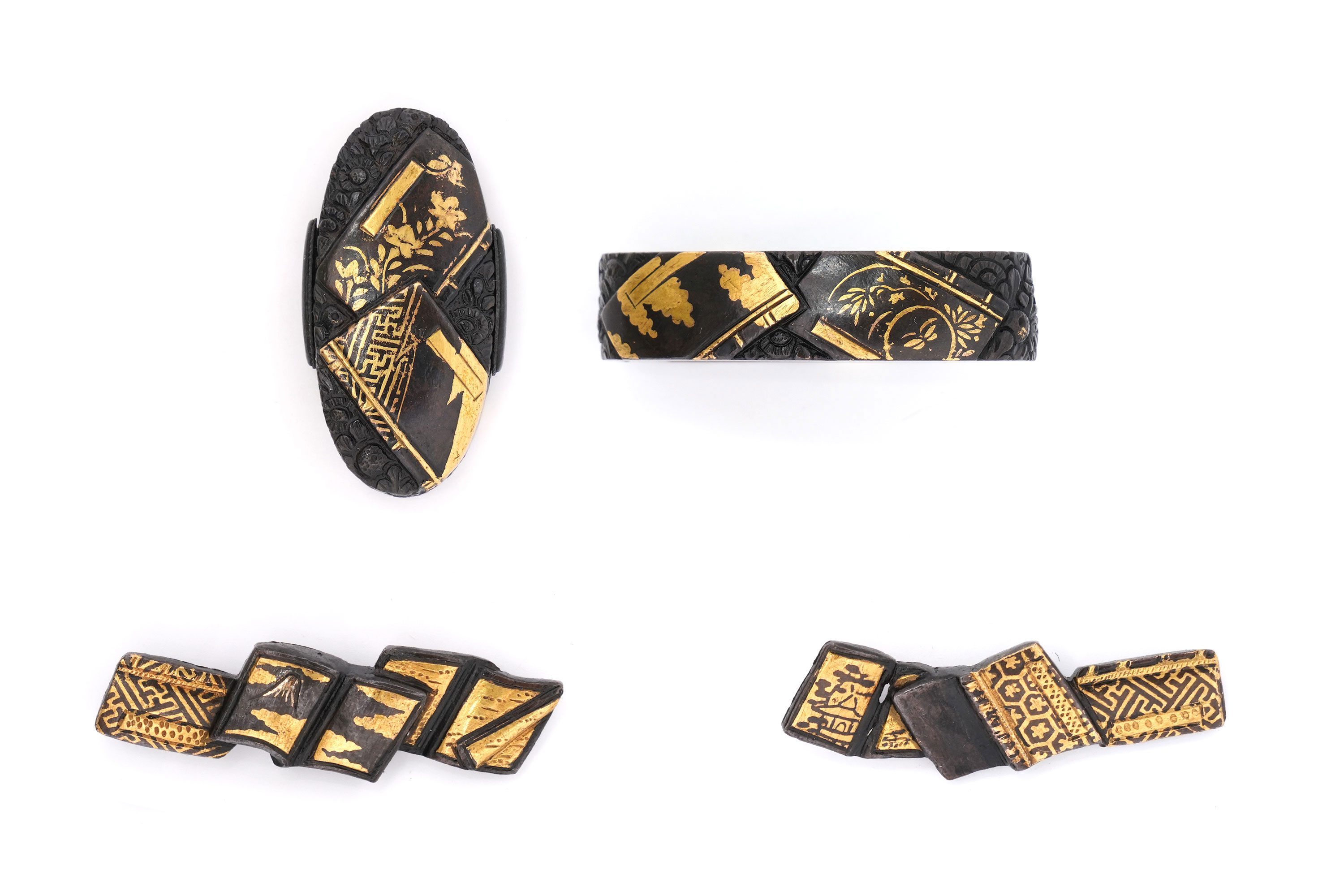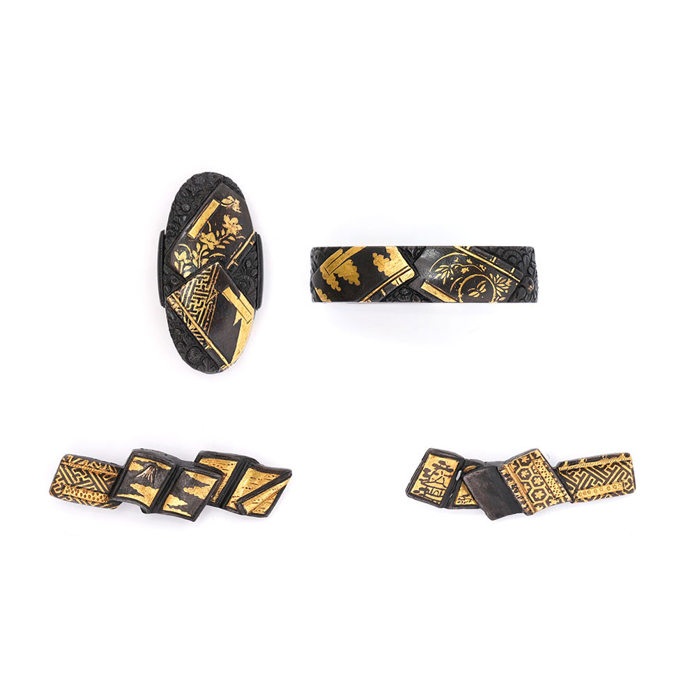 縁頭:38.25mm / 9.5mm / 34.3mm、目貫:41.15mm / 12.1mm / 39.15mm / 13.45mm