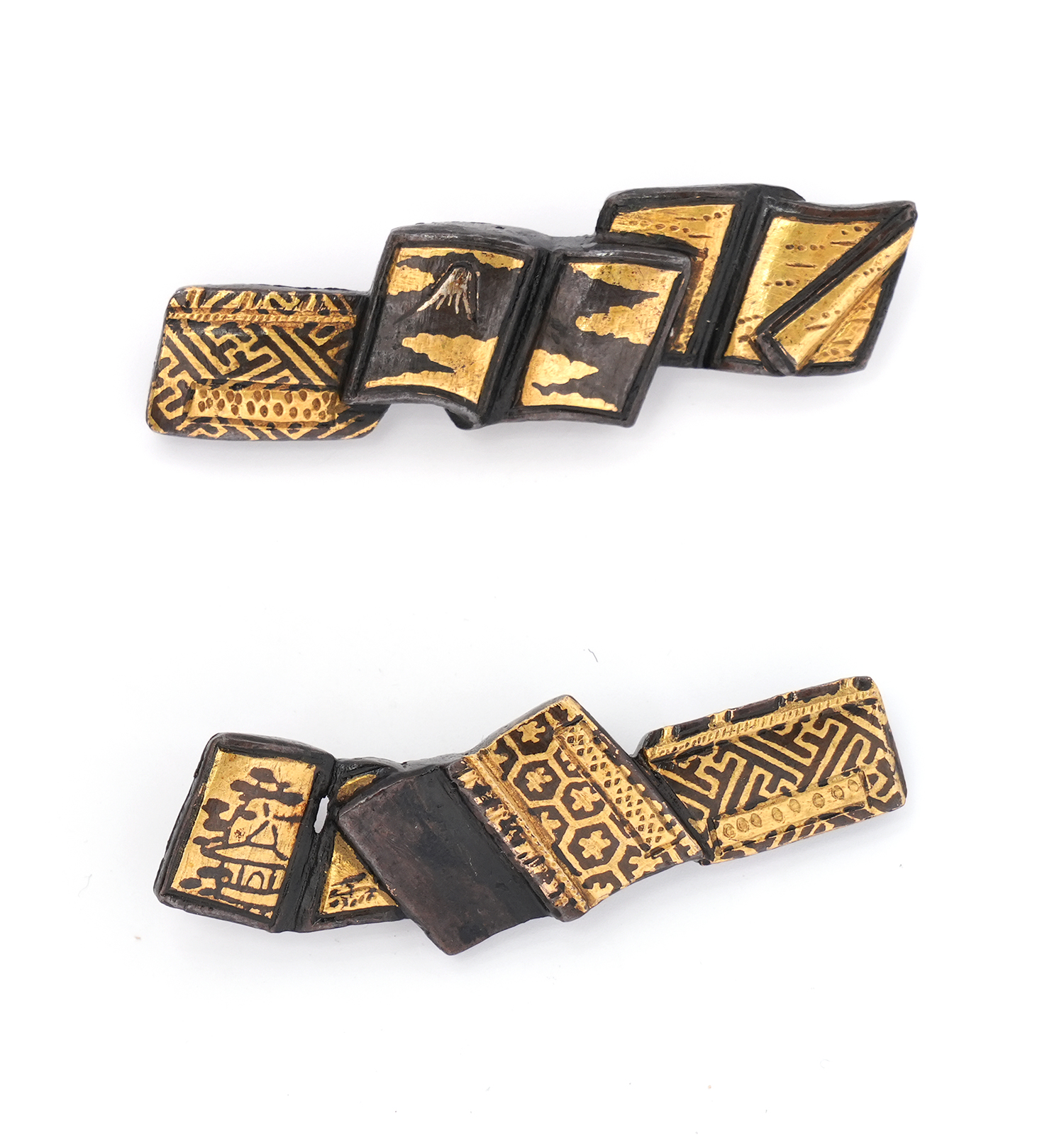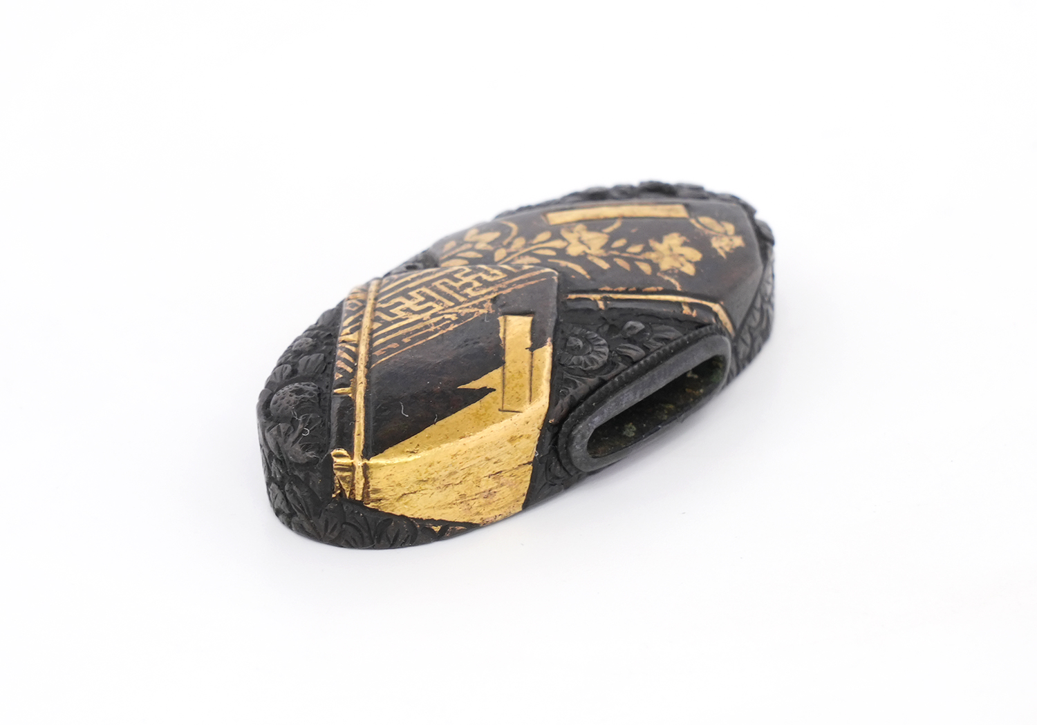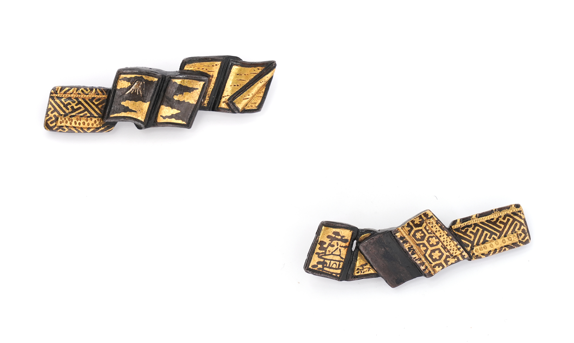 縁頭:38.25mm / 9.5mm / 34.3mm、目貫:41.15mm / 12.1mm / 39.15mm / 13.45mm
