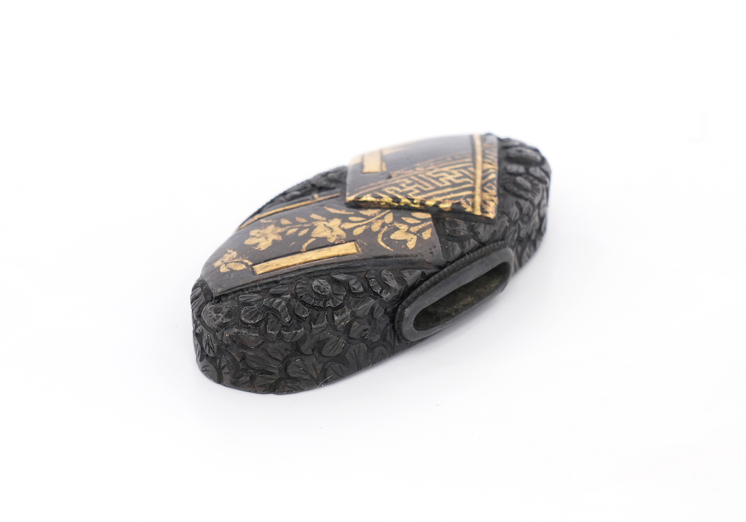 菊花に本図縁頭目貫二所 無銘-Mumei- 17-004