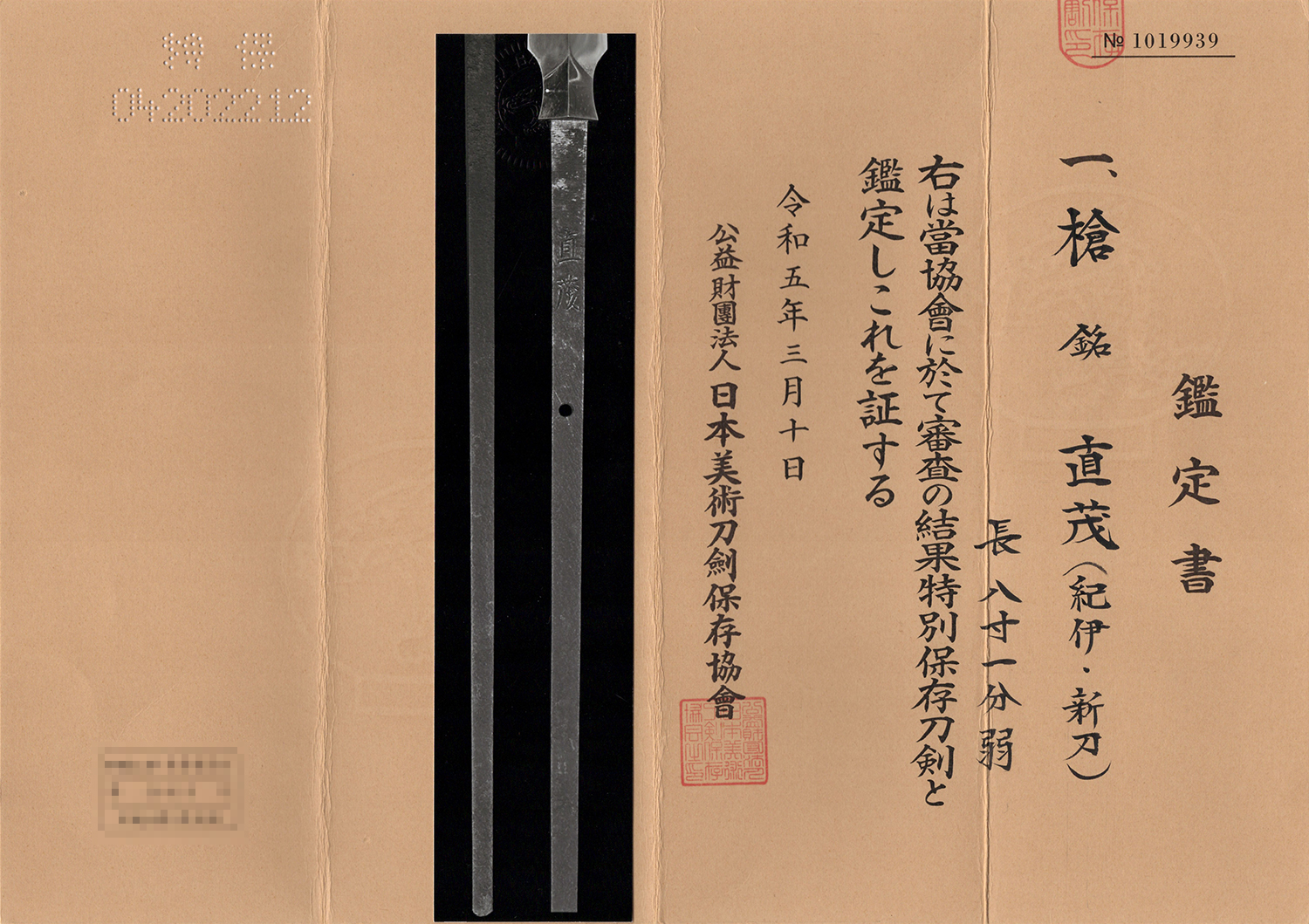 | 刃長(cm) | 24.4 (八寸零分五厘二毛) |