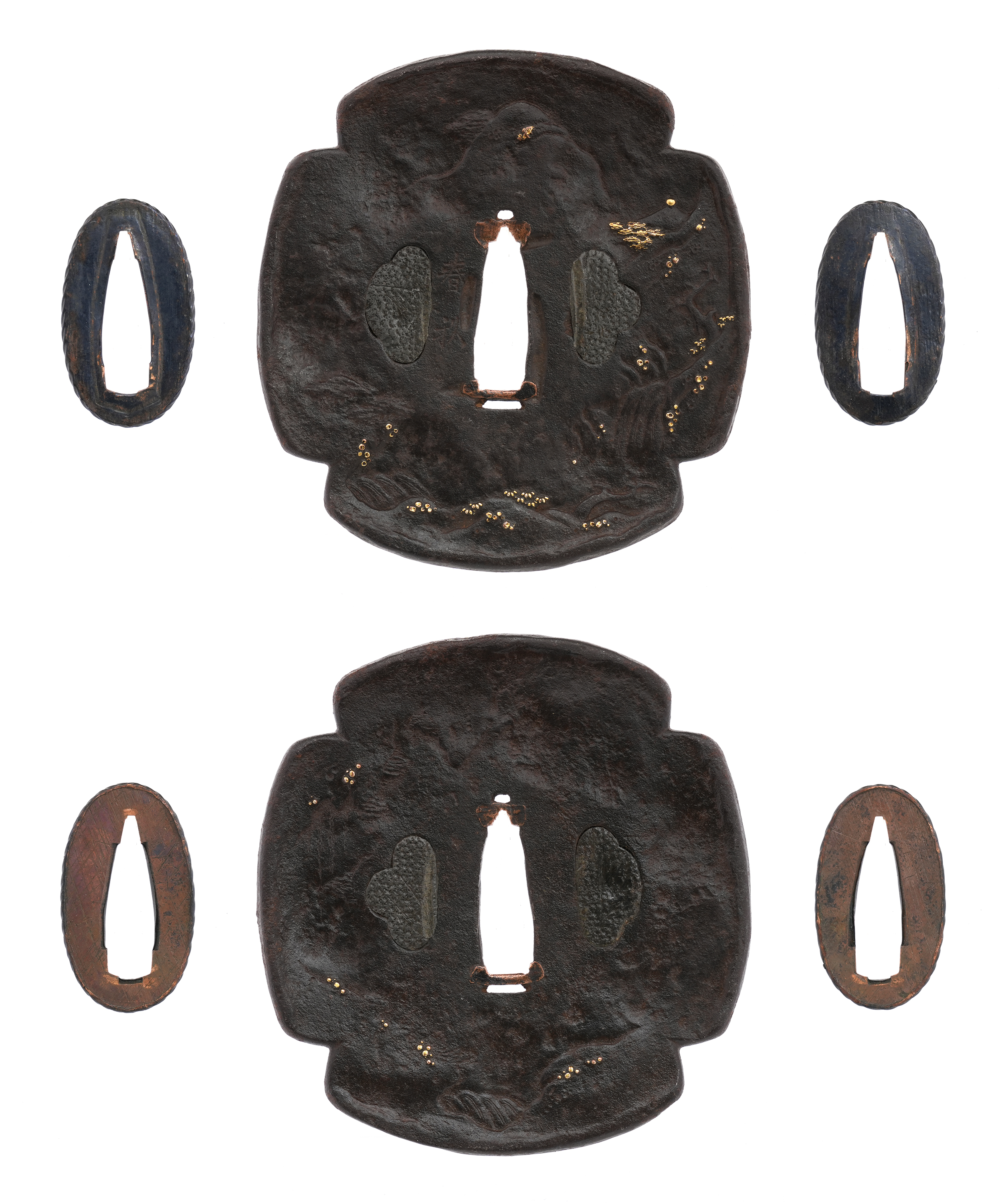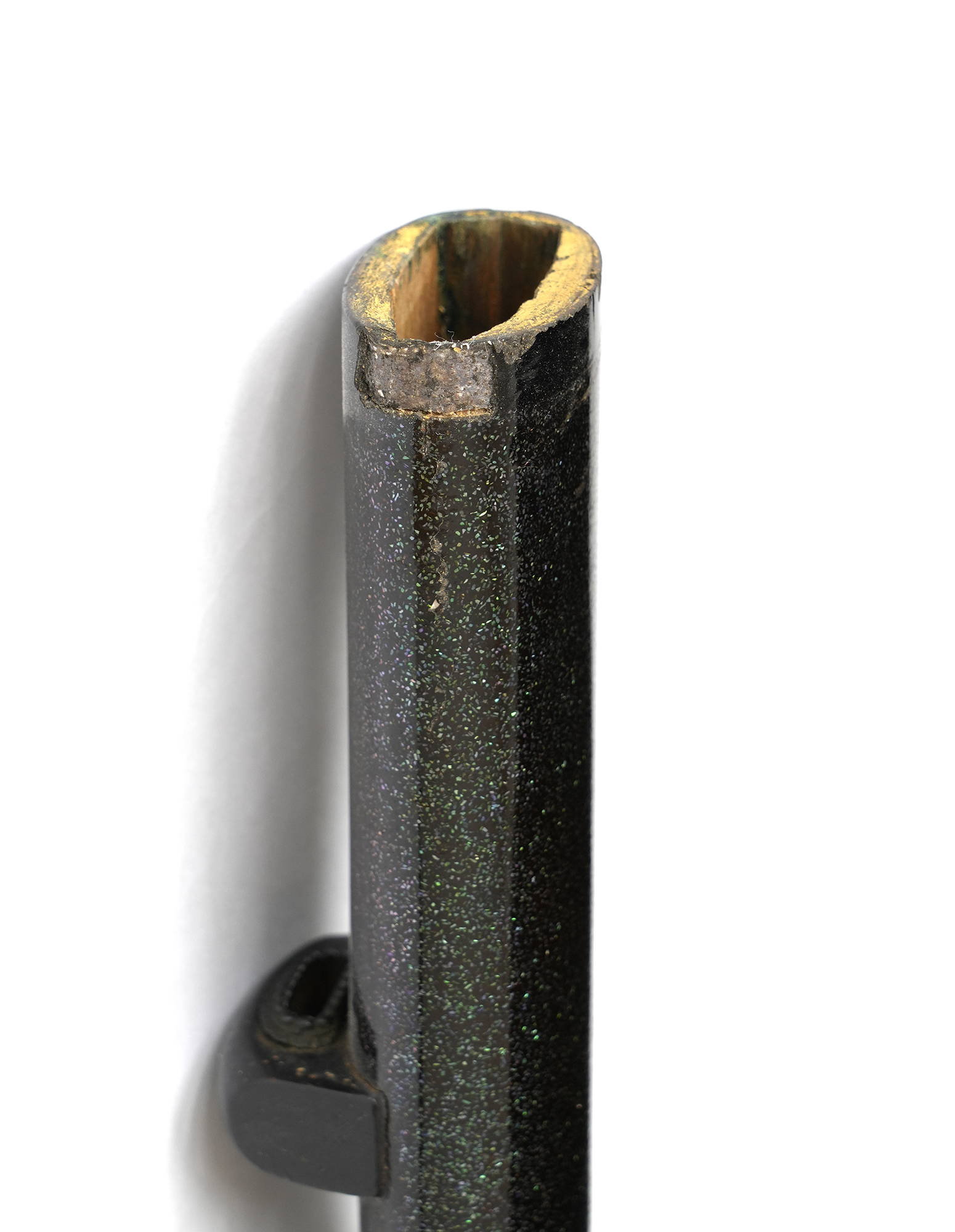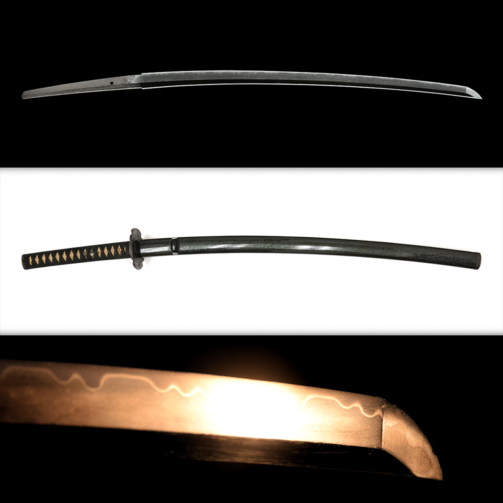 | 付属 | 素銅地赤銅着はばき、青貝微塵散塗鞘打刀拵 |