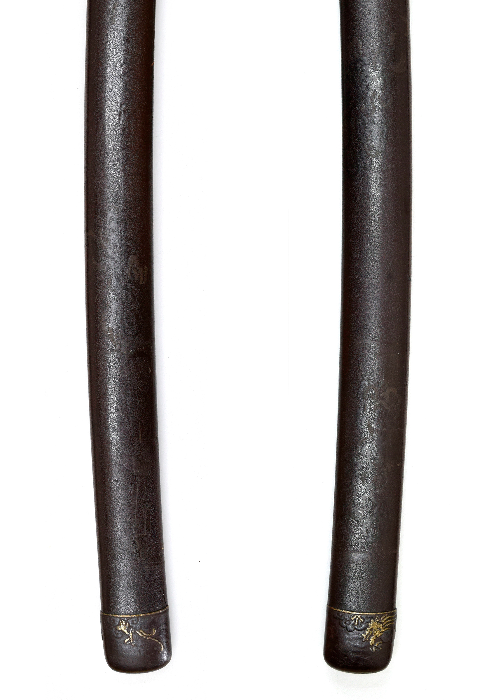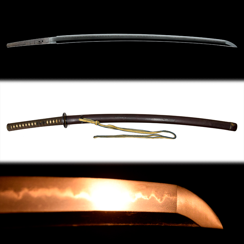 | 付属 | 素銅地金着はばき、焦茶石目塗雲文闇蒔絵鞘打刀拵 |