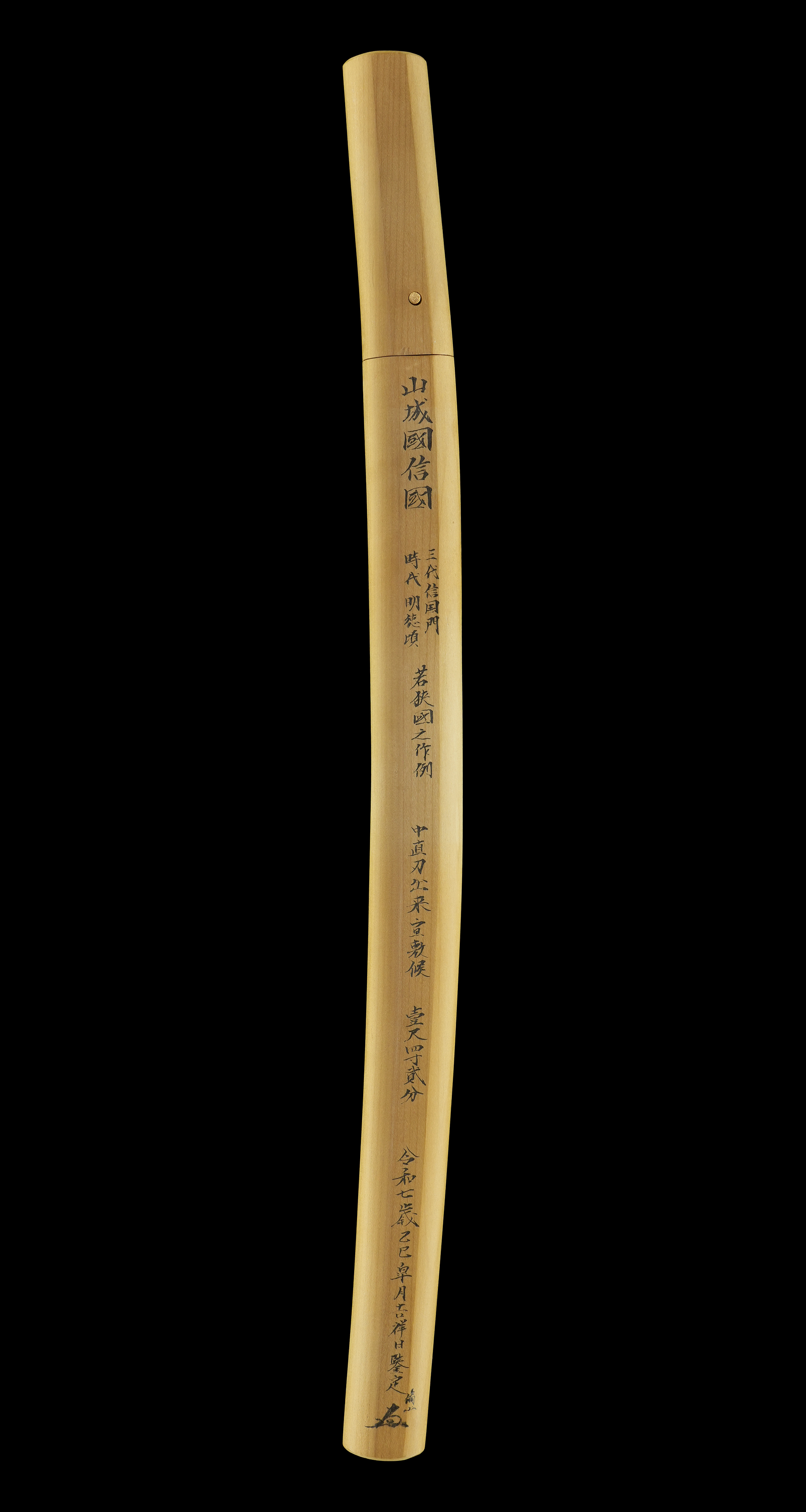 南北朝末期には代替わりの信國が存在し、更に応永頃に入ってからの信國派には、式部丞信國・左衛門尉信國の両工が代表工として著名で、他に二字銘の信國を銘する刀工がおり、いずれも應永年紀を切るところから「應永信國」と呼称されています。同銘が何人いるか明らかではありませんが、流石に京鍛冶の名門であるだけに、信國を名乗る刀工の作には優れたものが経眼されます。