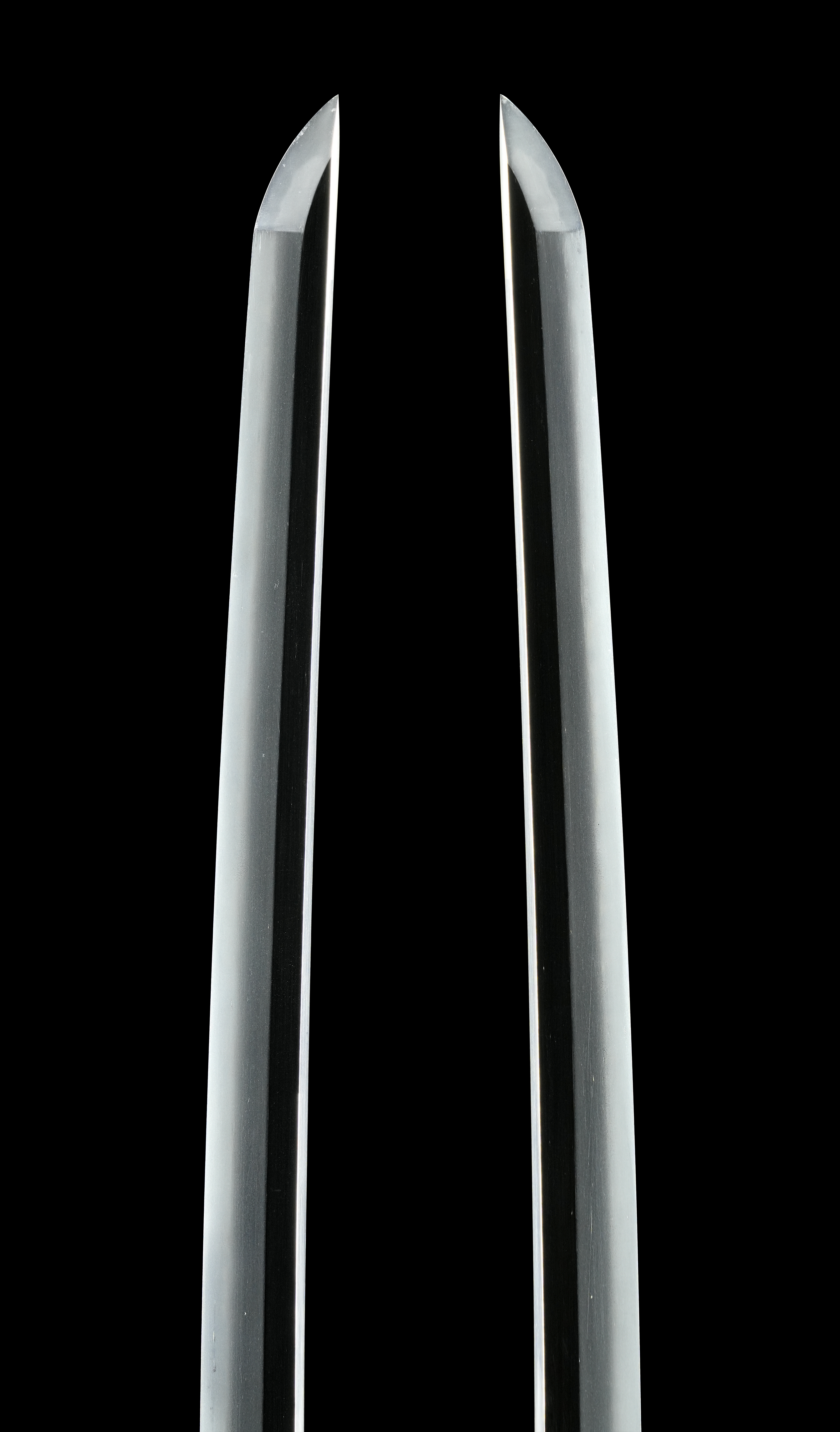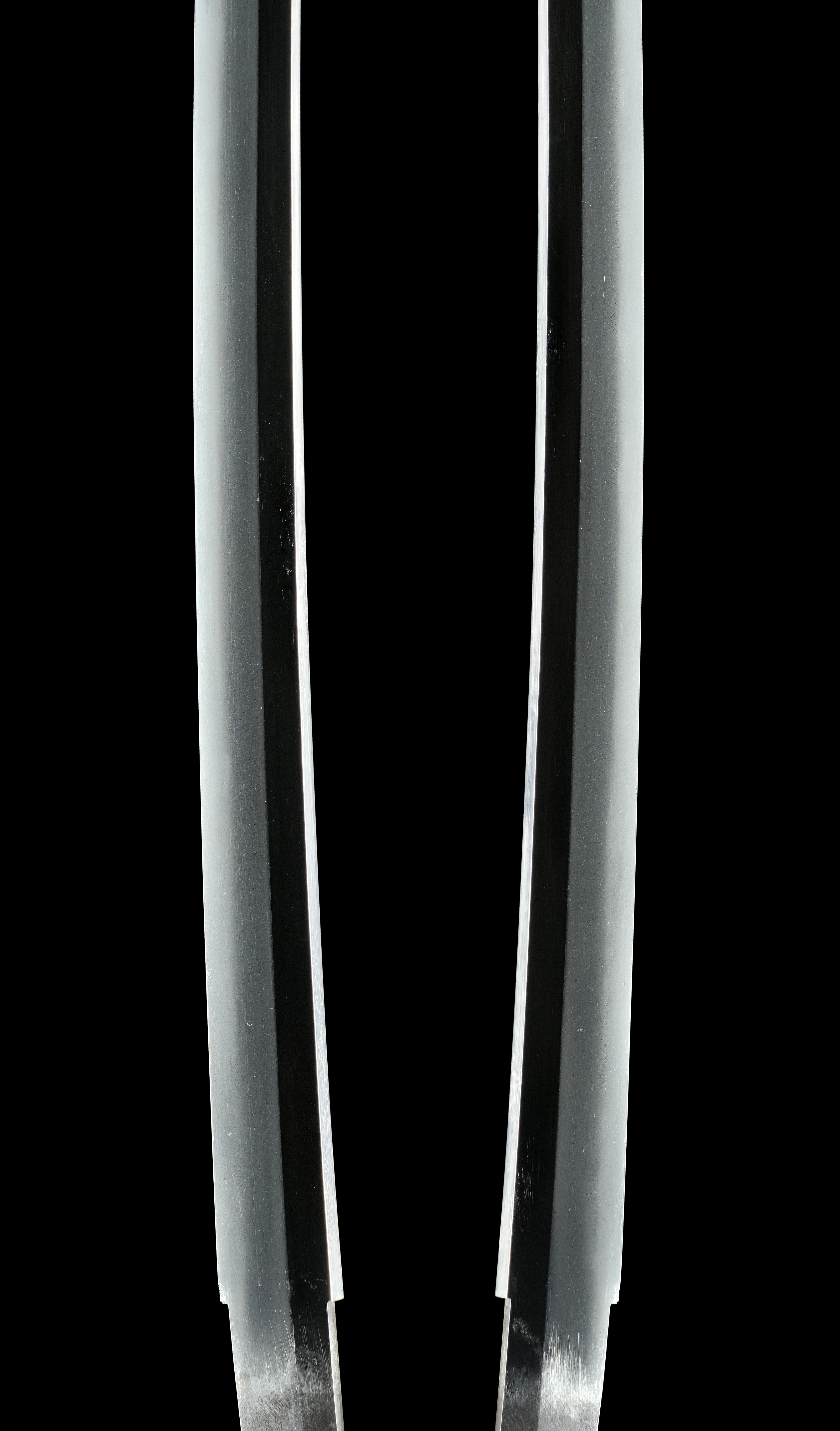 本刀は、元先の幅差頃好く開いて中切先やや延びごころ。小板目がよく錬れて詰んだ地鉄には地沸が付いて精美。刃文は匂口が明るく冴えた互ノ目を焼き上げており、虎徹の数珠刃を連想させる。刃中には足が盛んに入り、所々に大粒の沸が絡み、それが刃中にも現れて金筋を成し、鋩子は直ぐに先丸く返り、手持ちバランスが非常に良く、利刀として名高き安定の技量をひしひしと感じさせる作品です。