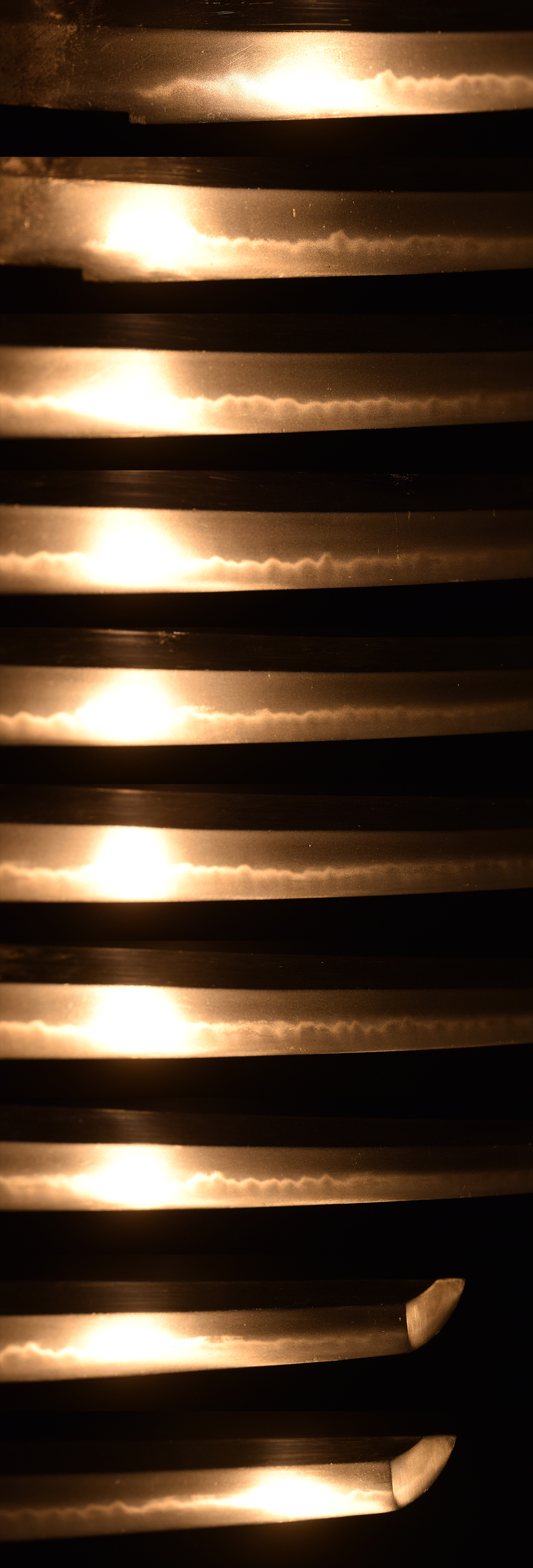 安定の作風は、大別すると二様があり、一つはのたれに互の目を交え、湾れが角ばる傾向の物と、他の互の目を主調とした乱れ刃があり、同作中では、前者の作例が多い。