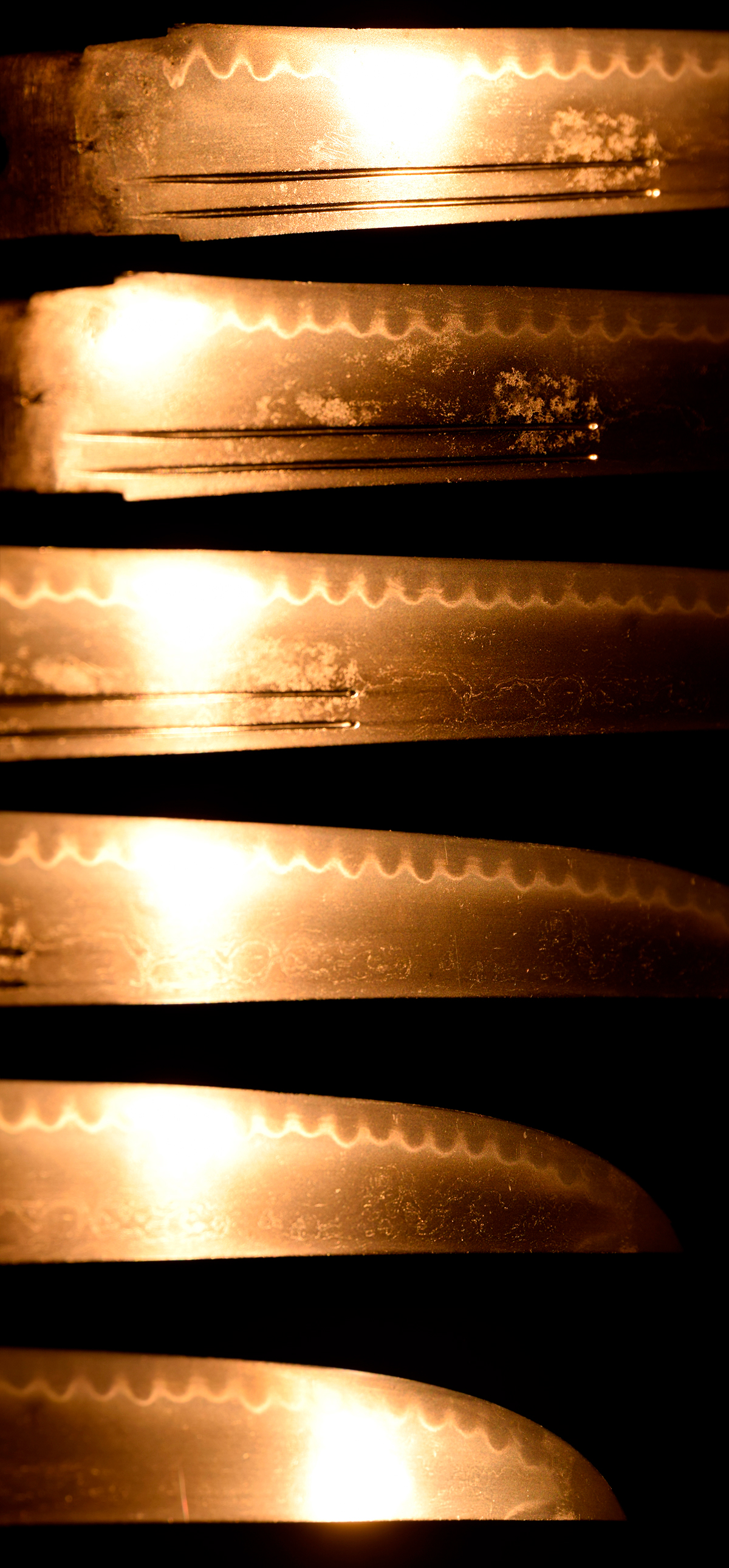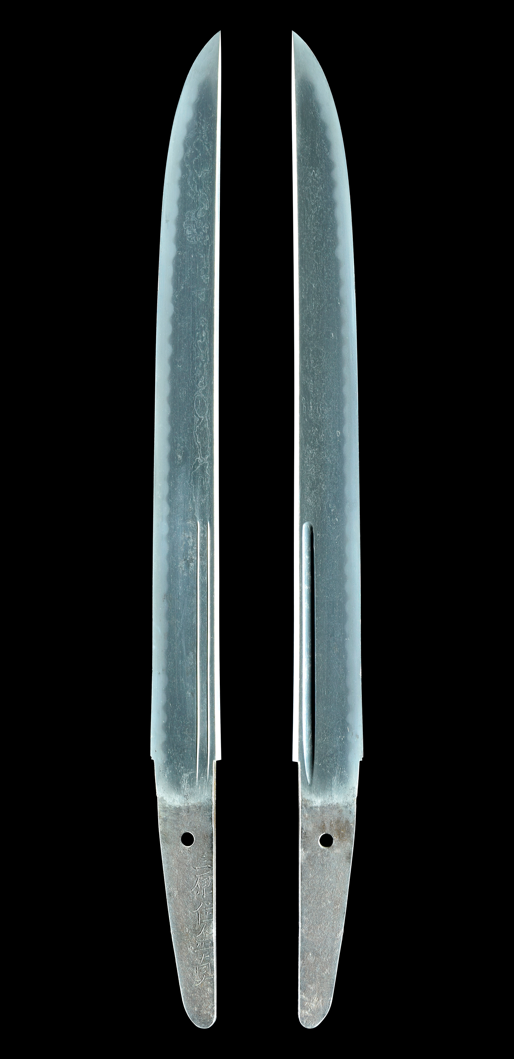 現状では手入れが不十分なため、薄らと錆の出ている箇所がありますが、表に護摩箸、裏に腰樋を掻いた風格ある姿は十分に魅力を湛えており、良い研磨を施せば本来の美しさを取り戻すことでしょう。