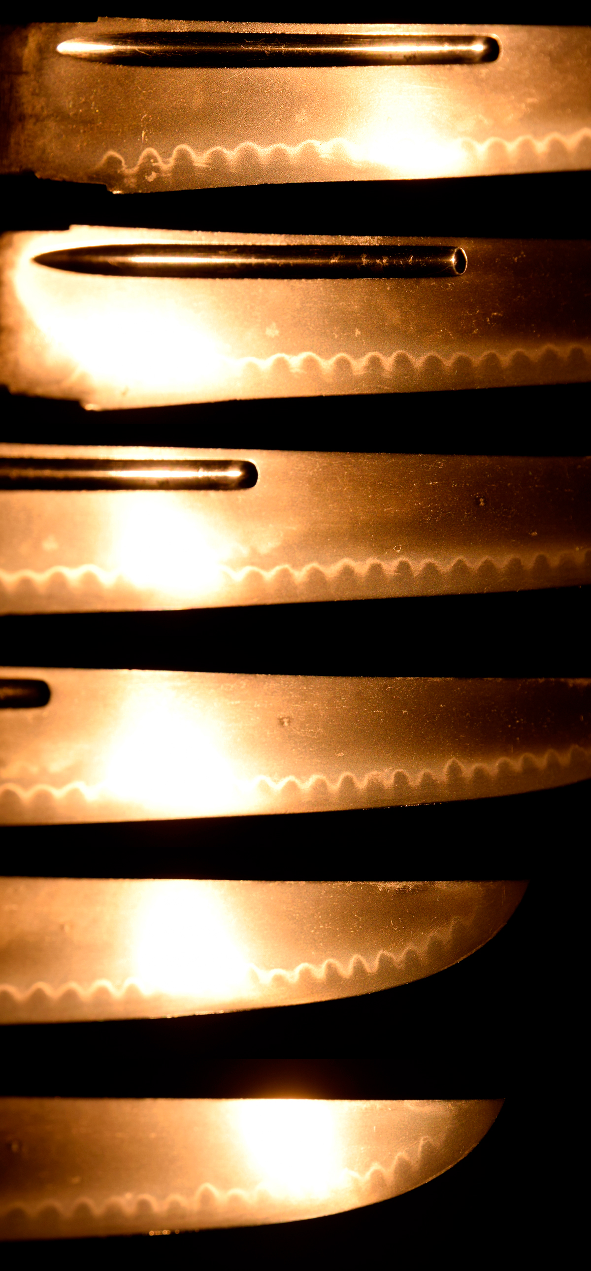 平造。表に護摩箸、裏に腰樋を掻く。地鉄は杢目肌がよく肌立ち、表には大肌も交えて変化に富む地鉄を呈し、匂口は明るく冴え、規則正しく連なる互ノ目を焼き上げています。足がよく入り、刃縁には細かな砂流が随所に掛かり、鋩子は乱れ込んで先丸く返るなど、小脇指(寸延び短刀)として出来の良さが随所に感じられます。