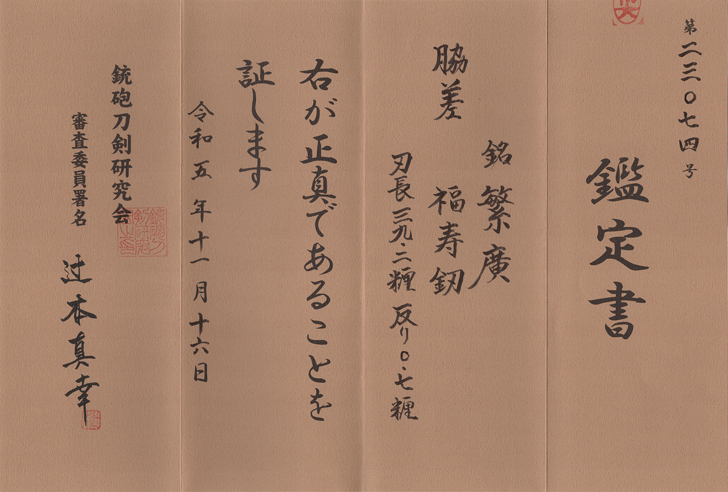 繁廣 福壽剱 - Shigehiro Fukujuken - 3-917
