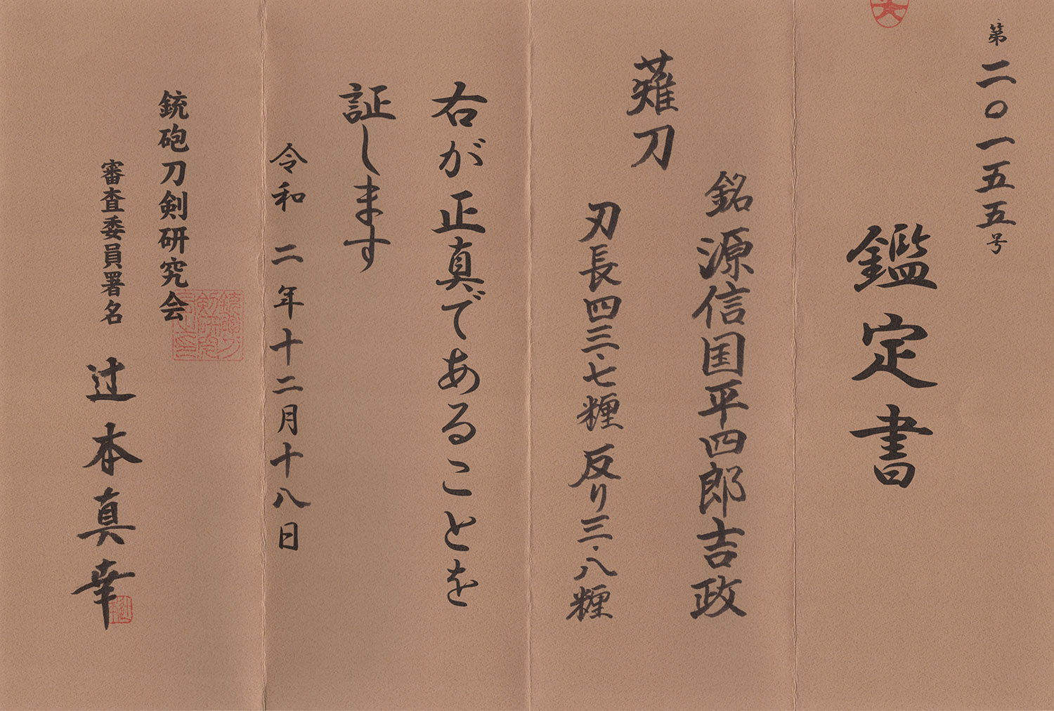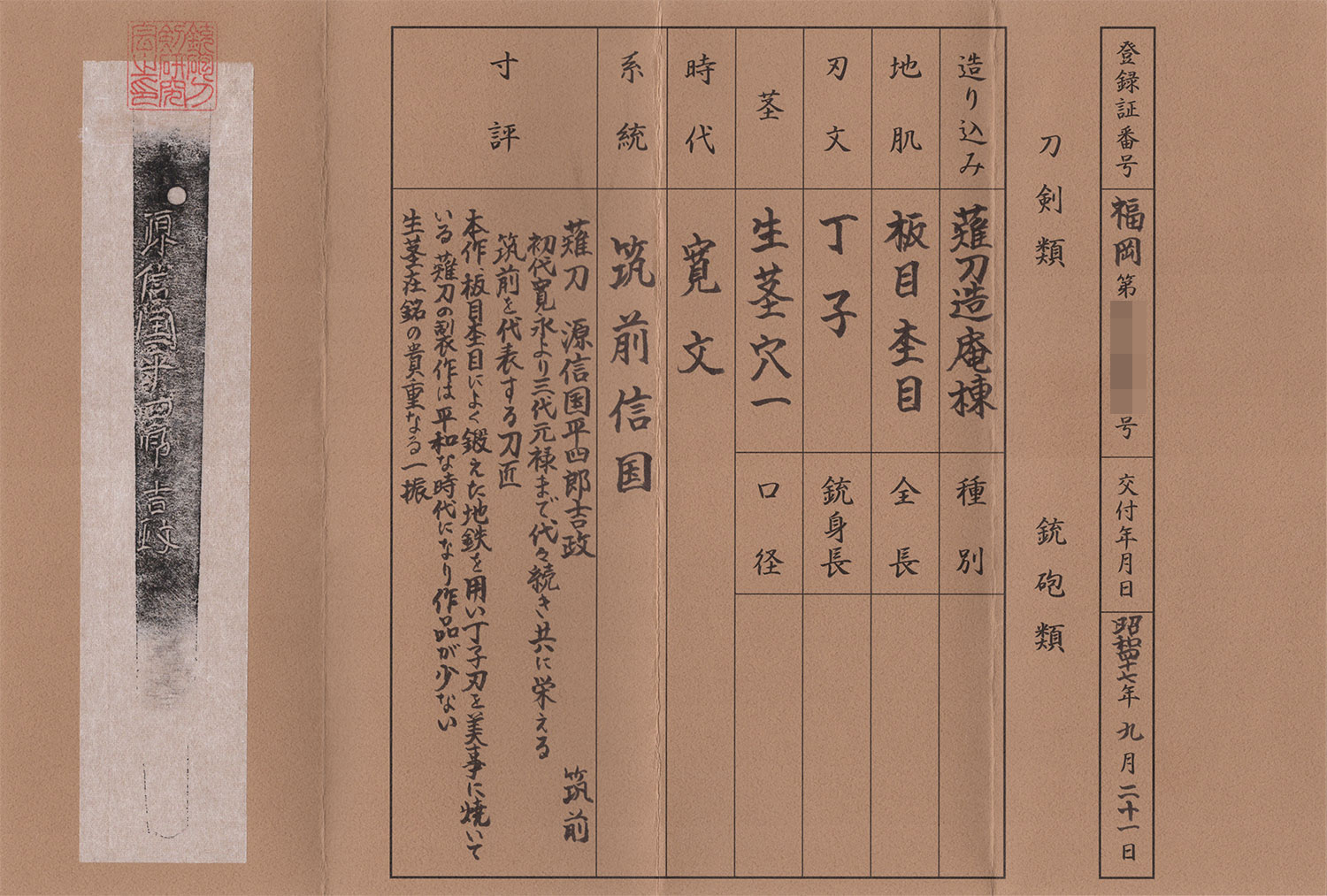 附属 銃砲刀剣研究会鑑定書、拵残欠、絡繰白鞘