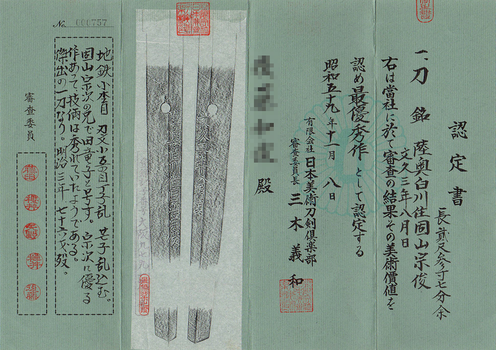 銘鑑によると奥州白川に同名で二代おり、本作はその年紀より二代宗俊の作と鑑せられます。