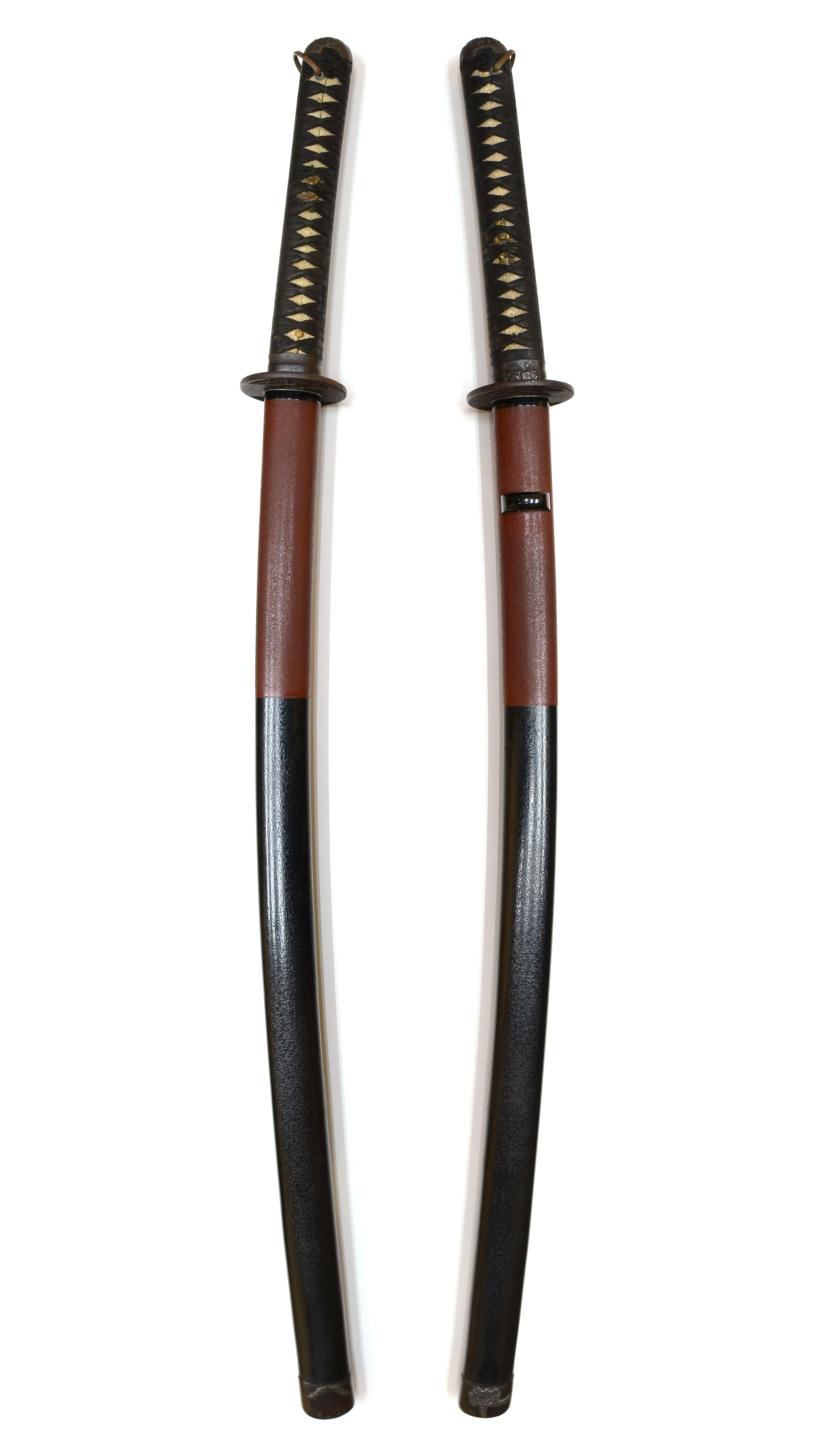 附属 保存刀剣鑑定書、銀はばき、腰茶石目黒石目塗鞘打刀拵、白鞘、 継木