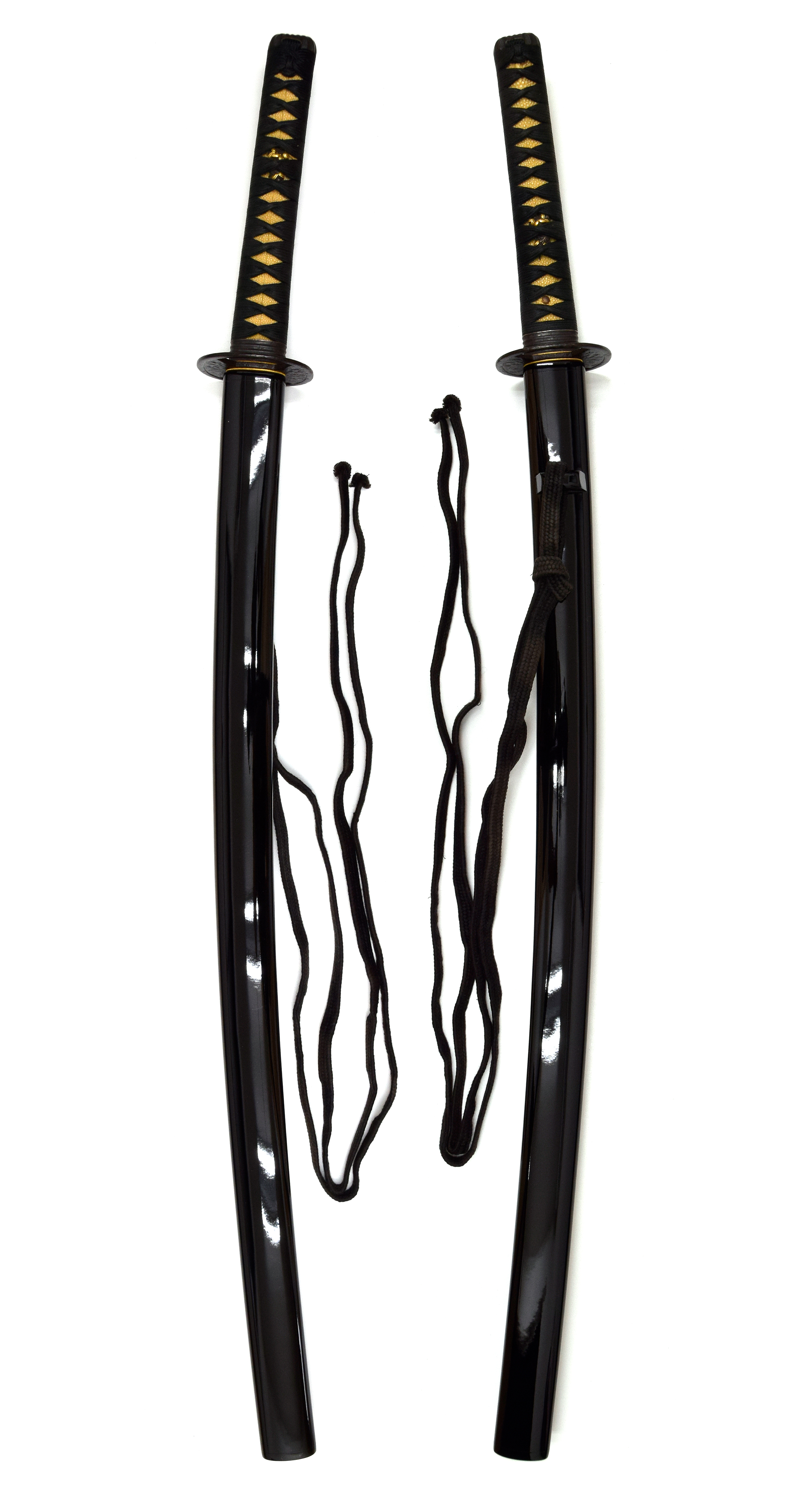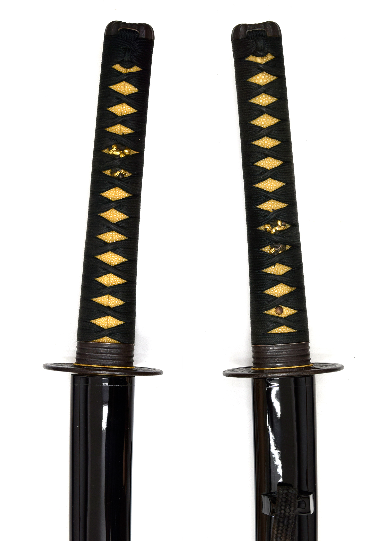 附属 銀二重はばき、黒蝋塗鞘打刀拵