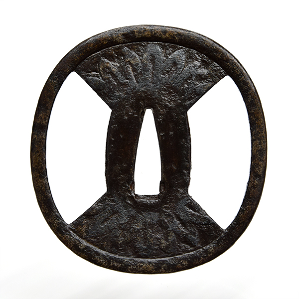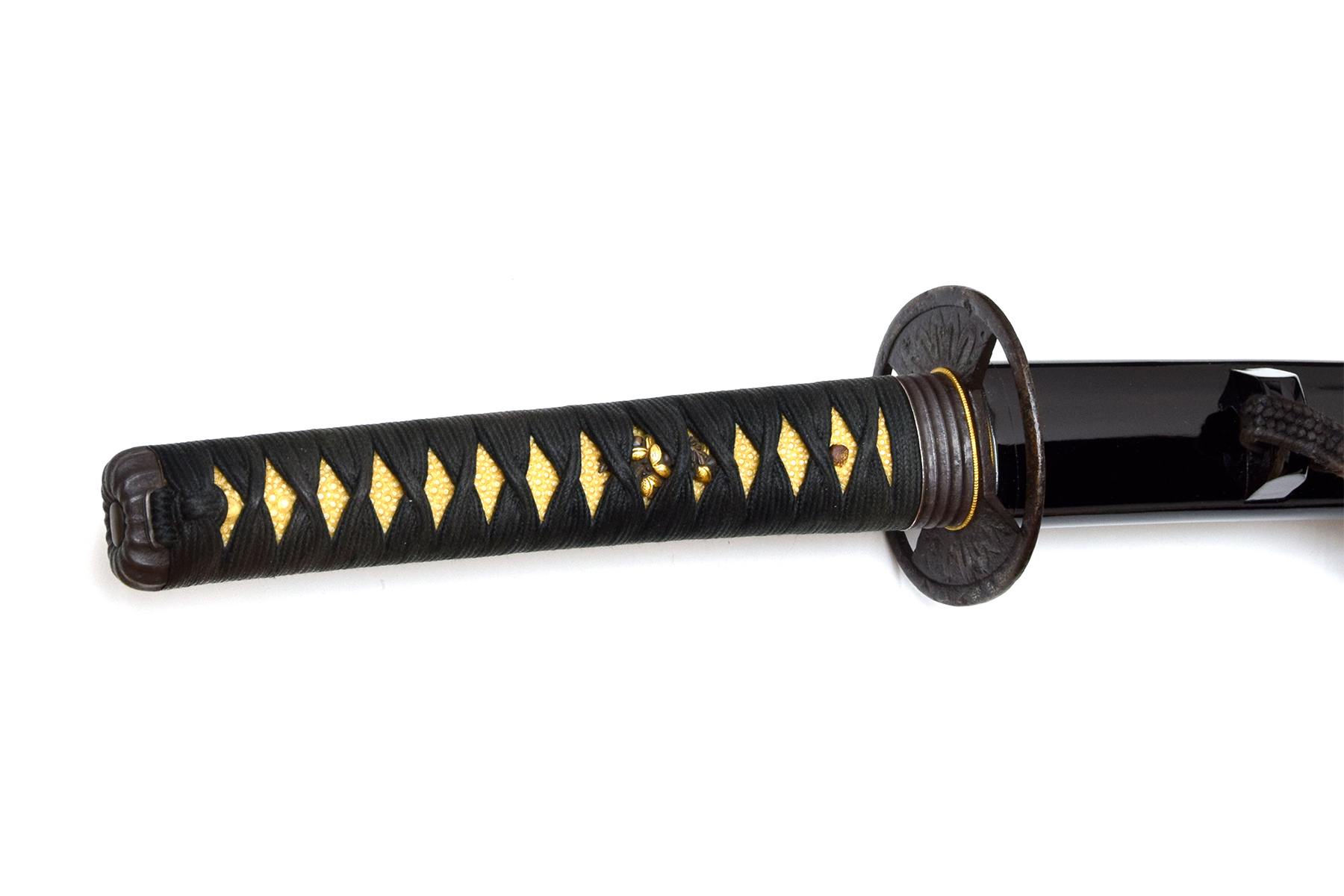 附属の拵は鞘が傷んでいたため、当店にて簡易武用鞘を新調しました。柄や鐔は全て時代物の金具が用いられており、無骨ながらも上品さを感じさせます。