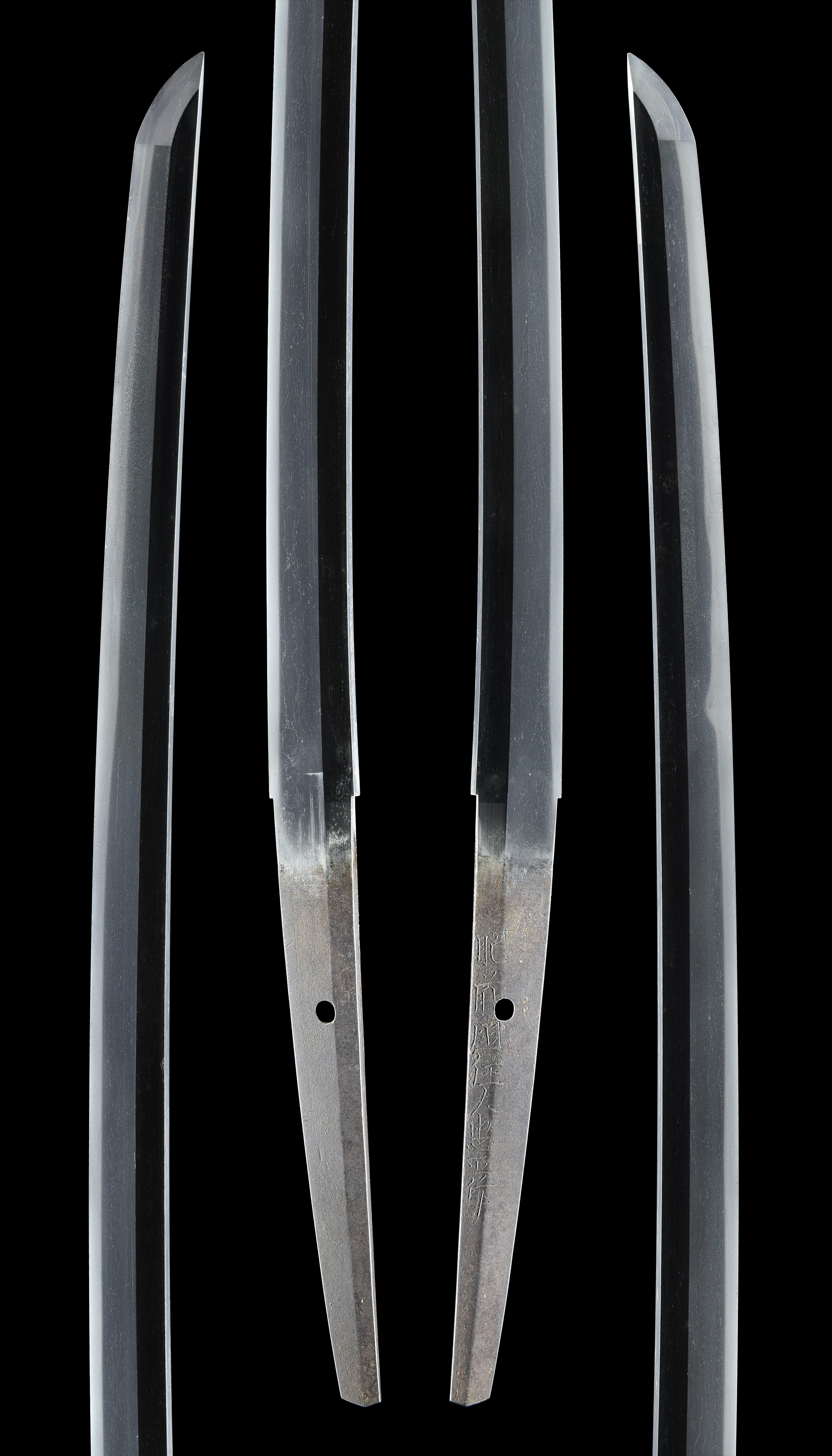 | 付属 | 素銅地銀着はばき、黒蝋塗鞘打刀拵、白鞘 / 簡易継木 |