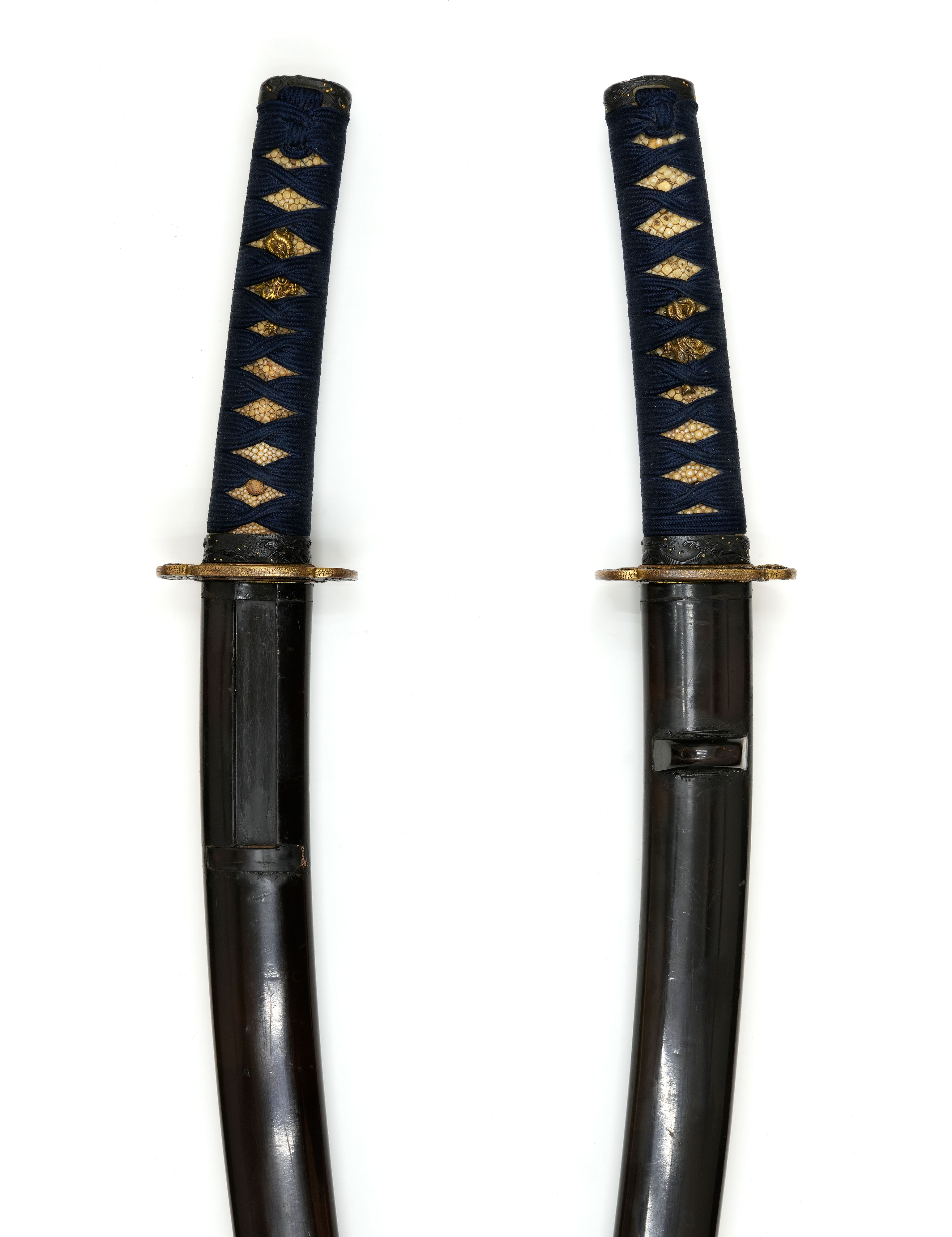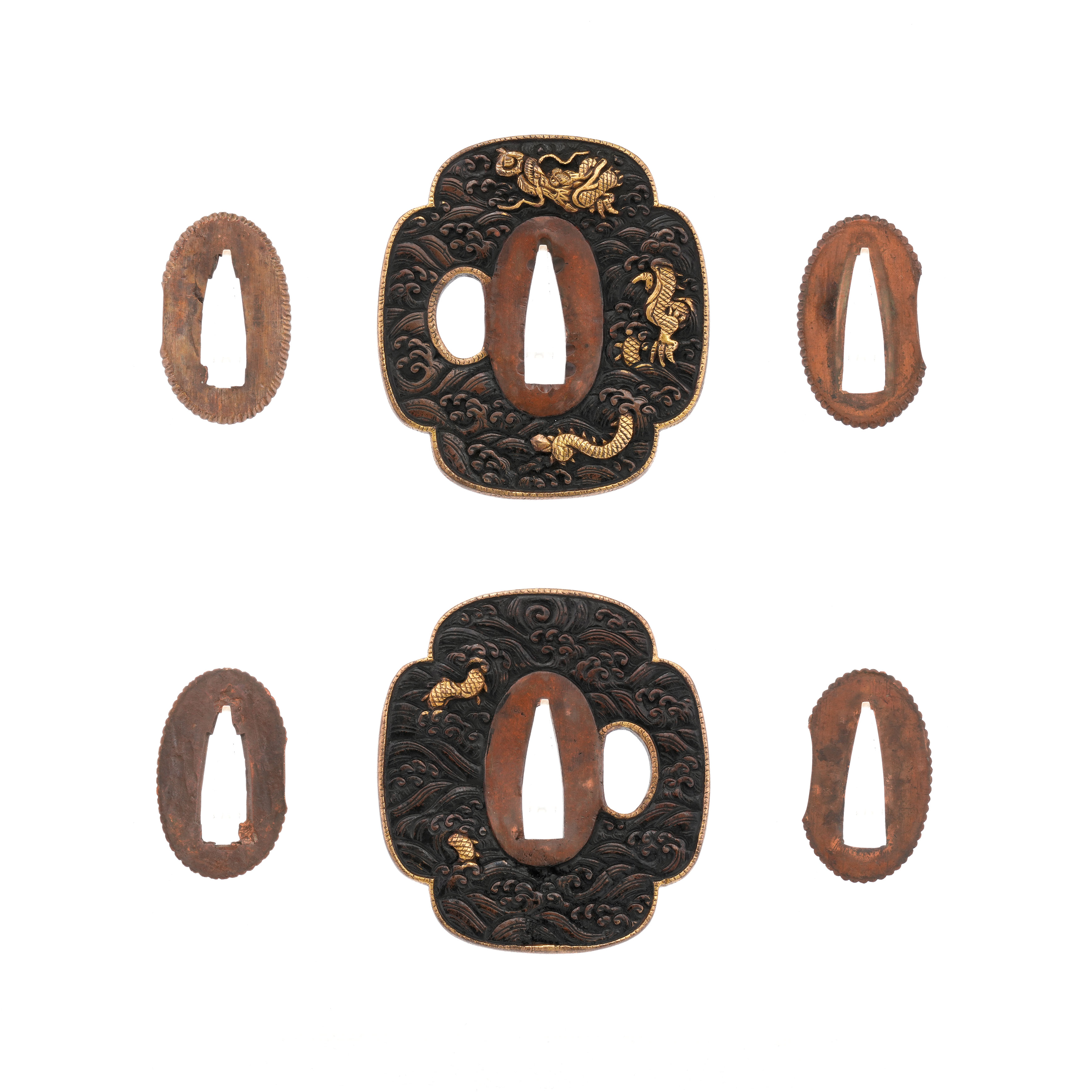 附属 黒蝋塗鞘脇指拵、下貝素銅地銀着上貝素銅地金着二重はばき