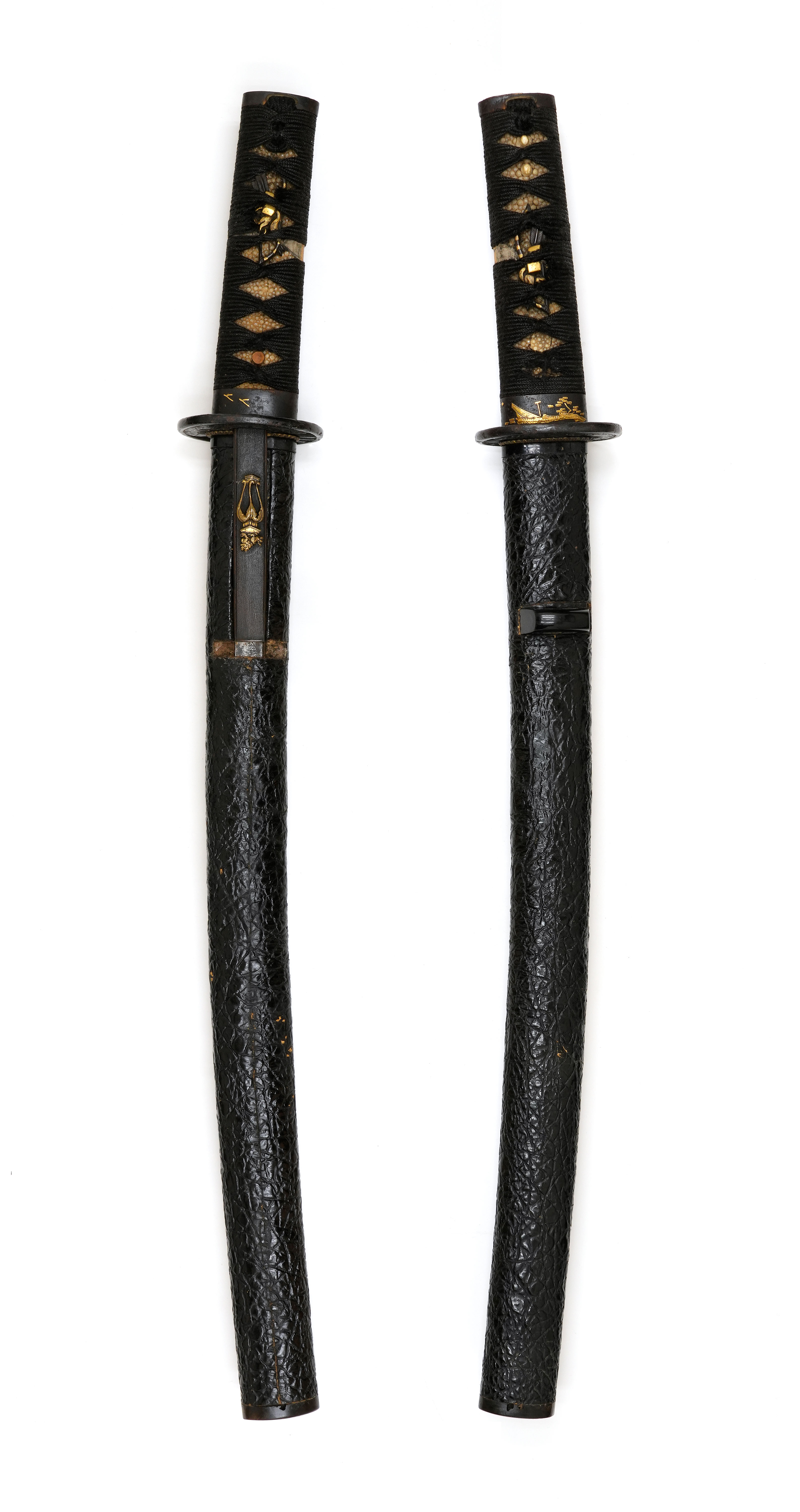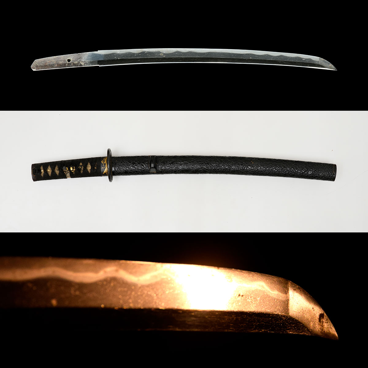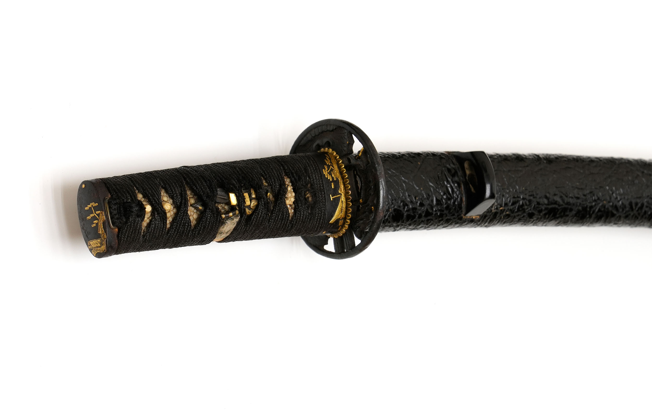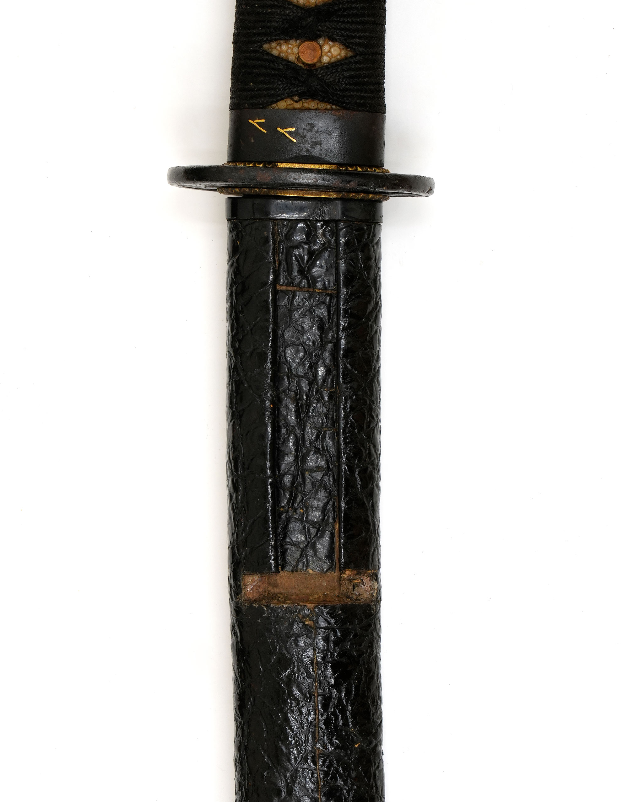 | 付属 | 黒皺革包鞘脇指拵、下貝素銅地銀着上貝素銅二重はばき |
