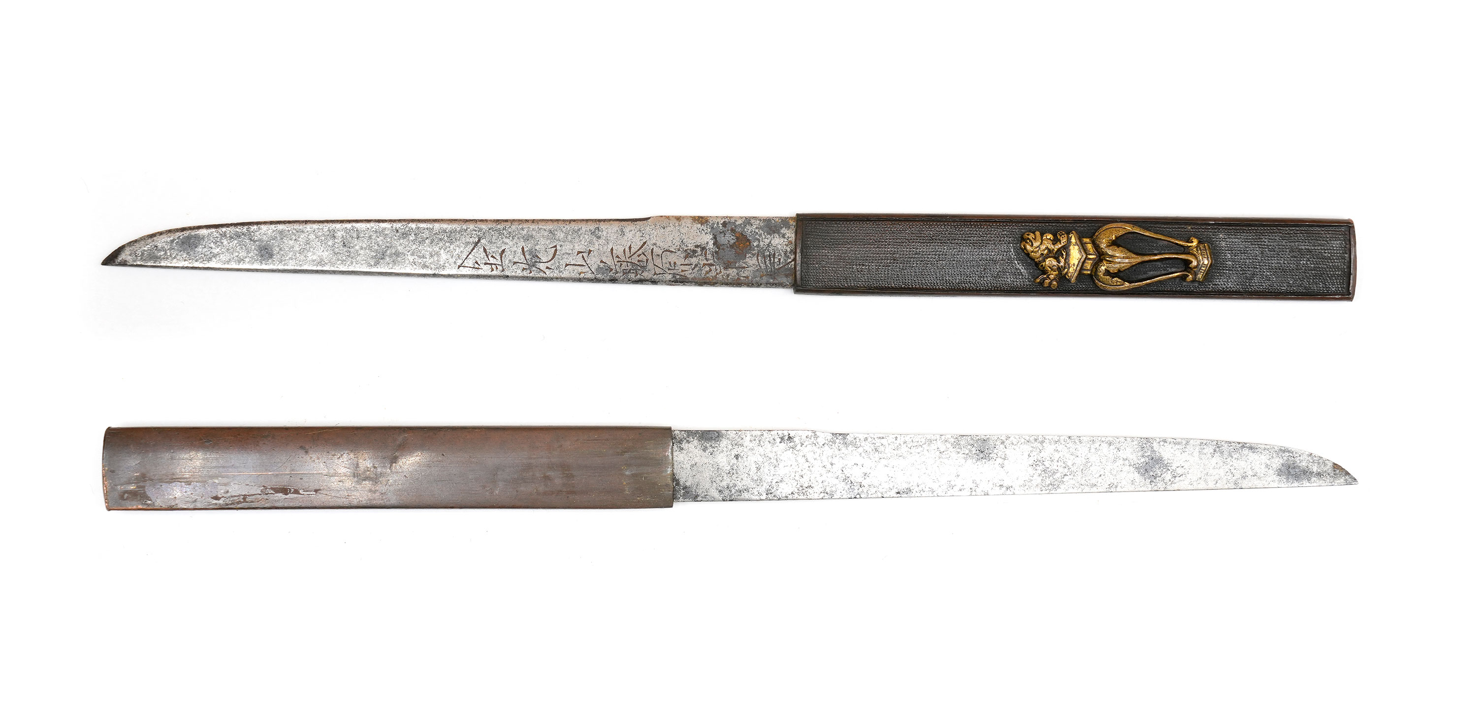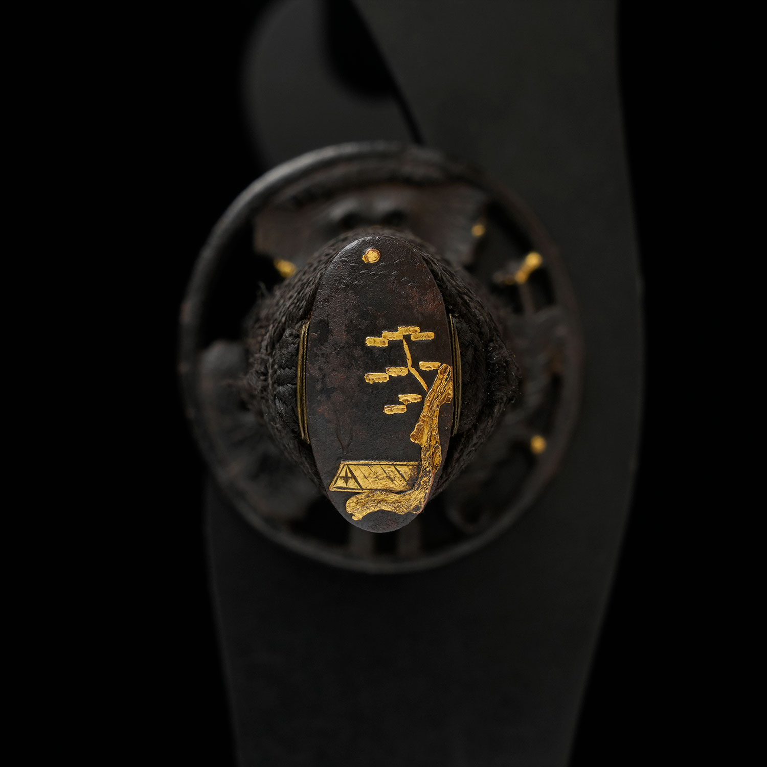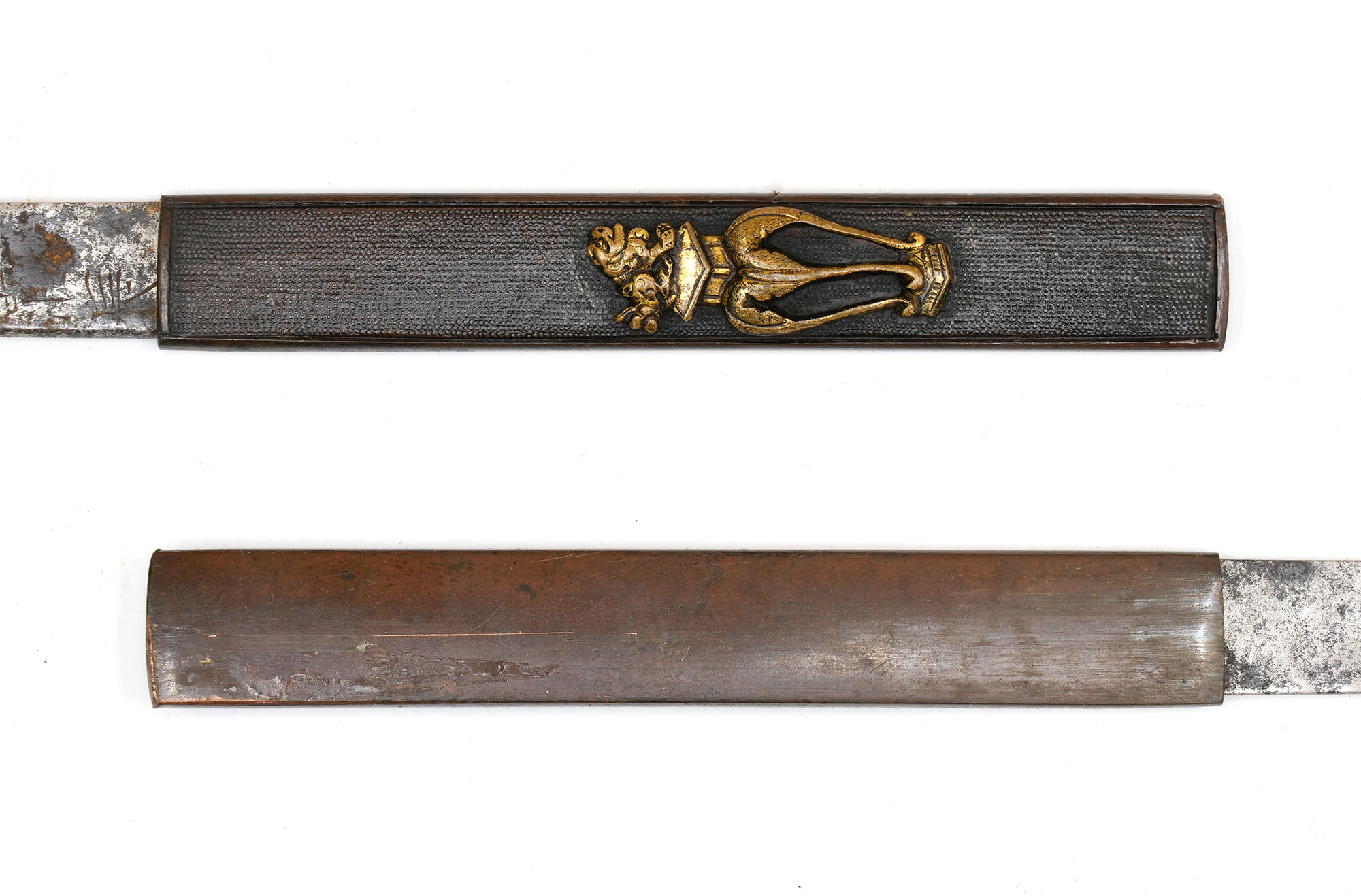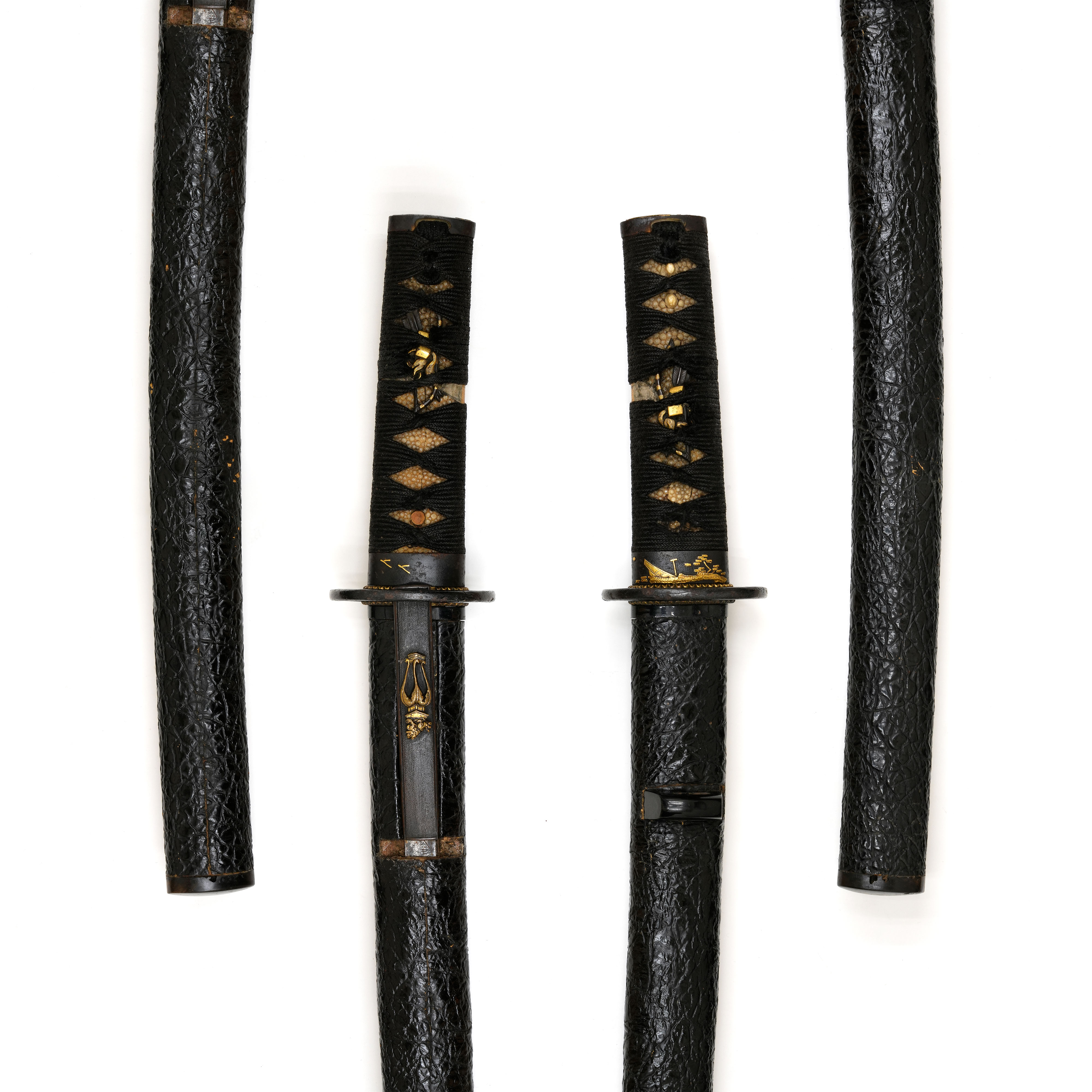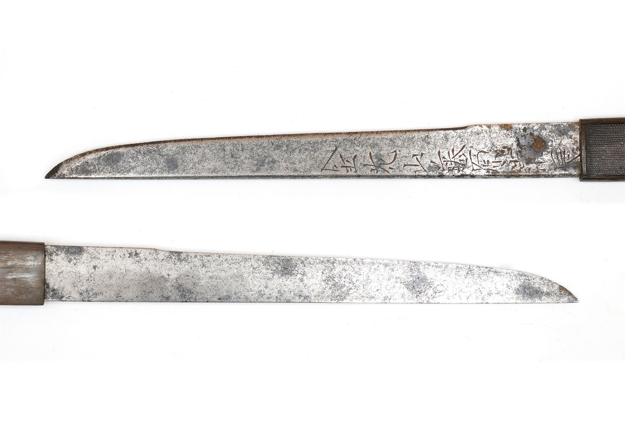 | 付属 | 黒皺革包鞘脇指拵、下貝素銅地銀着上貝素銅二重はばき |