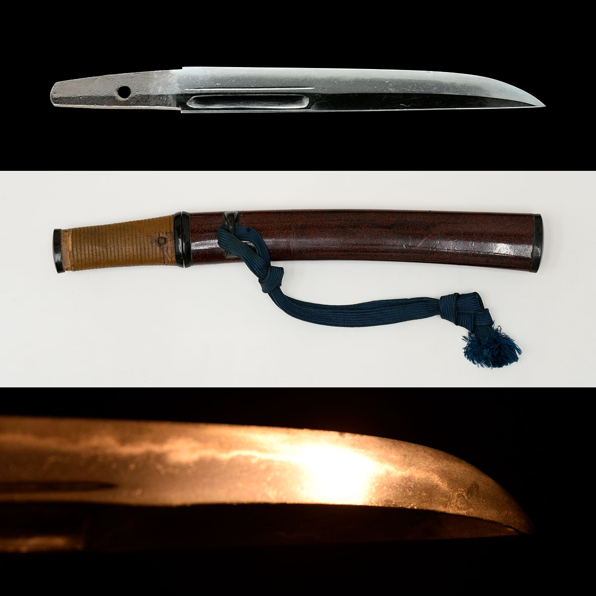 | 付属 | 変塗鞘合口短刀拵、素銅地檜垣文様はばき |