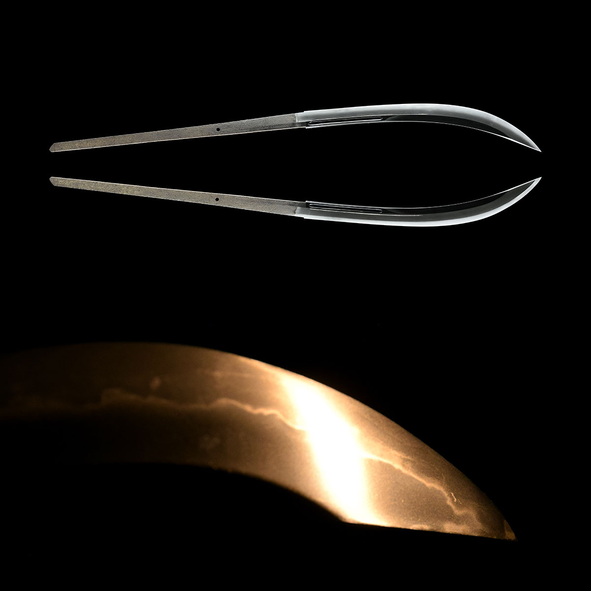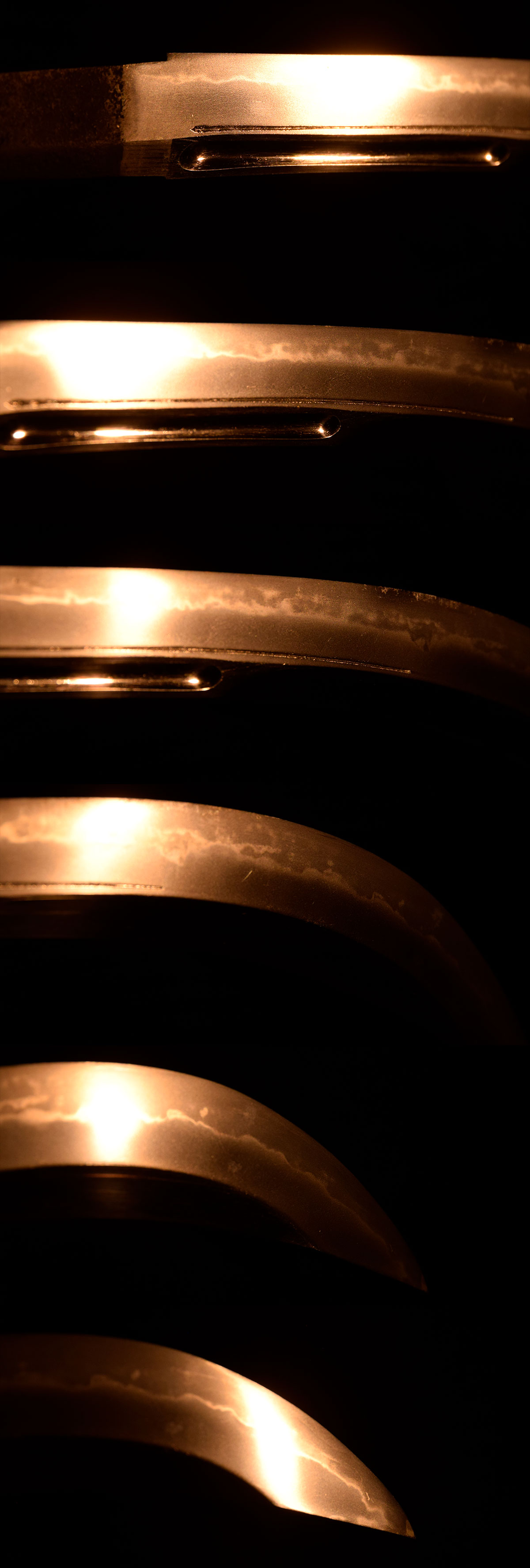 特筆すべき鍛錬疵は見当たらず、出来の良さと作域の珍しさを兼ね備えた貴重な一振と言えましょう。余力のある方には、ぜひ然るべき研磨を施し、特別保存刀剣鑑定の受審をお勧めいたします。
