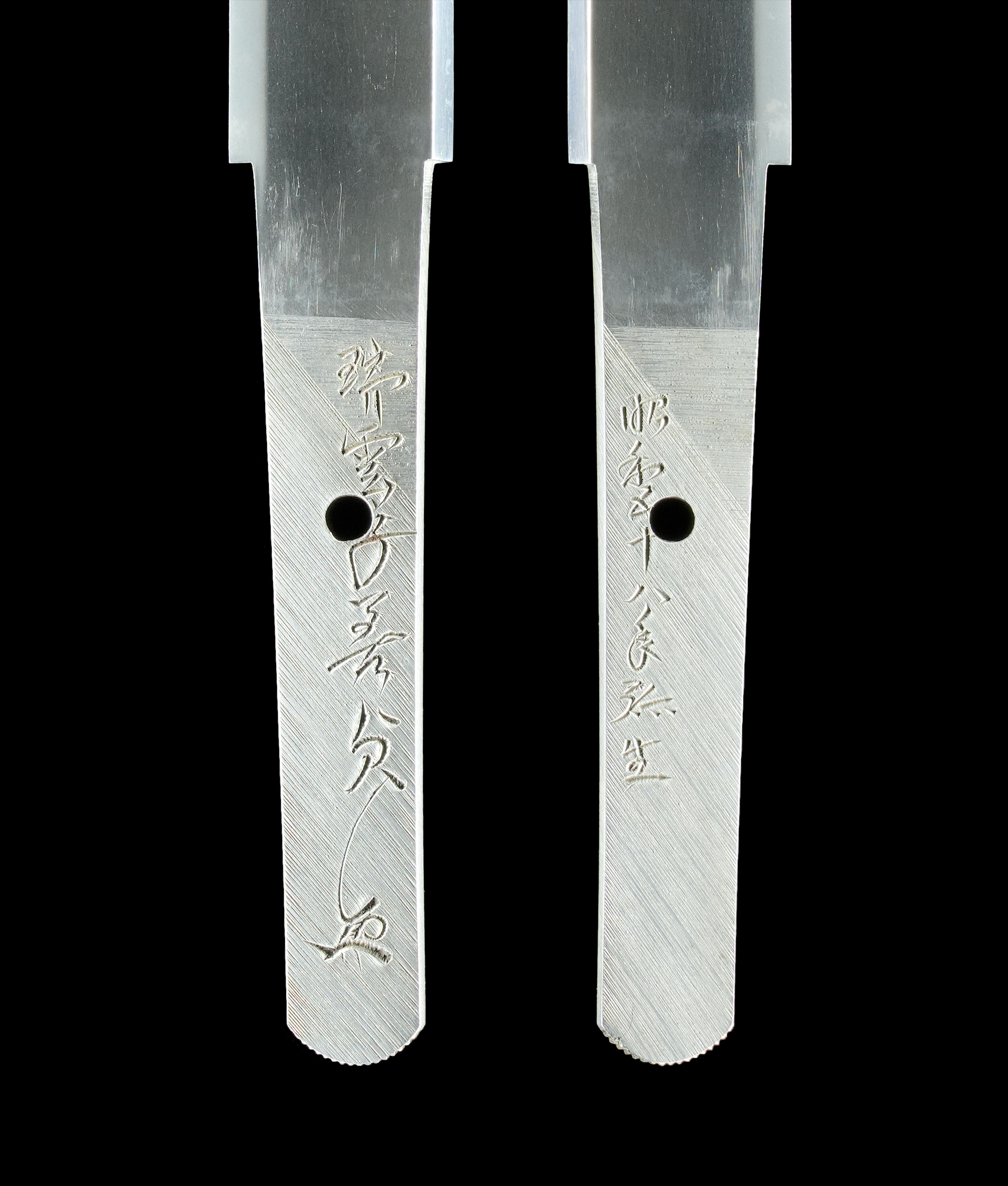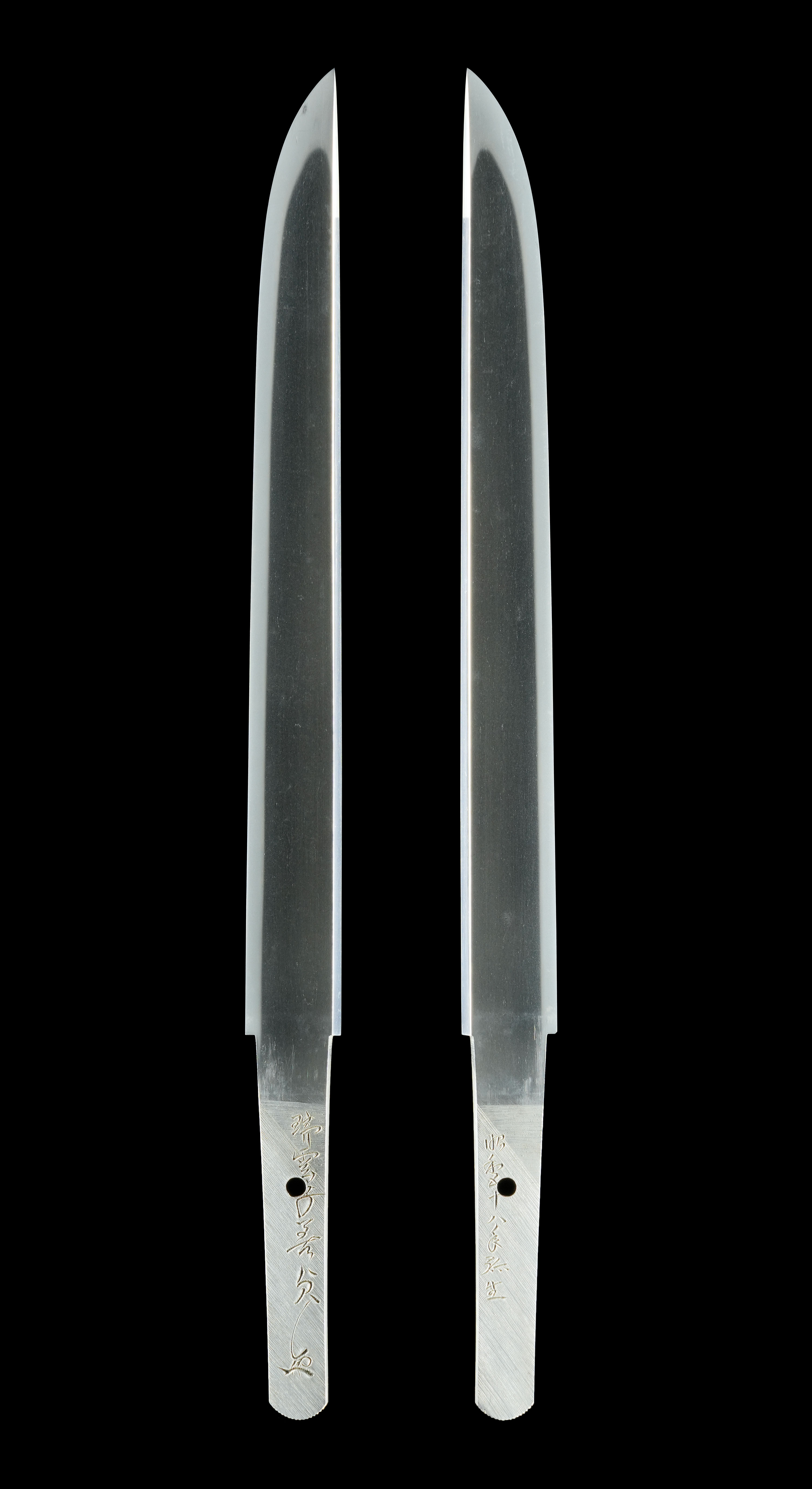 本短刀は平造で姿端正。小板目の地鉄はよく錬れて緻密に詰み、地沸がついて緻密な地景が入り精美。刃文は匂口明るく冴えた直刃を焼き上げ、鋩子は直ぐに品良く丸く返るなど、全体として破綻のない完成度の高い出来です。