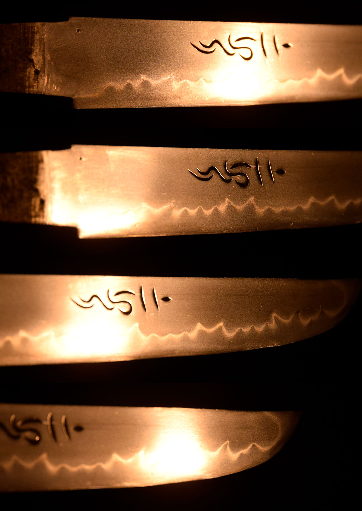一見すると洋鉄による素延べ造りのようにも映りますが、刃文を仔細に観察すれば沸が付いており、返りも確りと焼かれていることから、和鉄が用いられていることは明らかです。