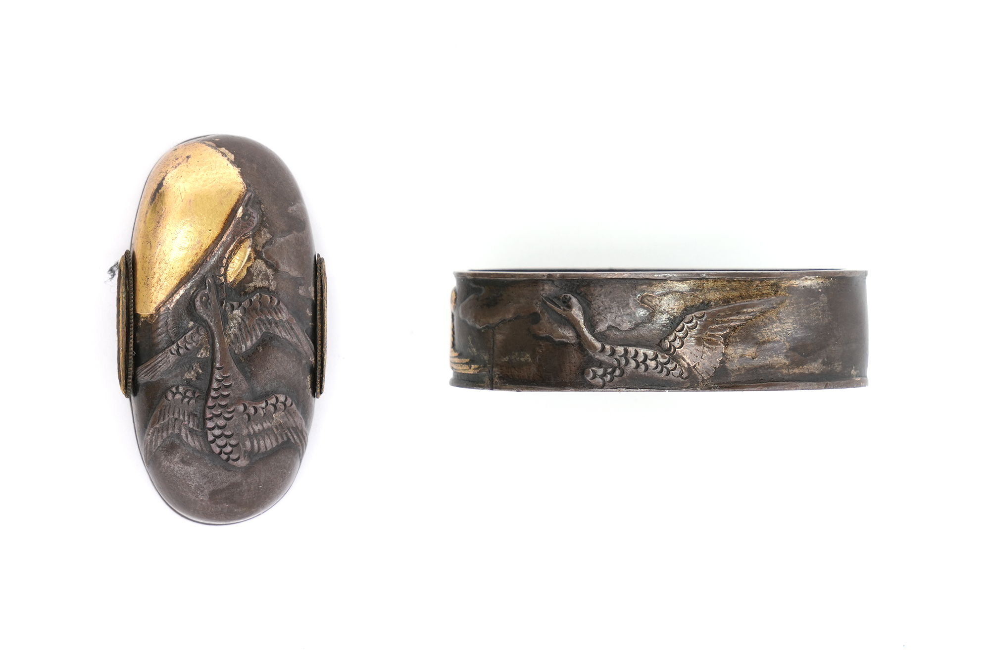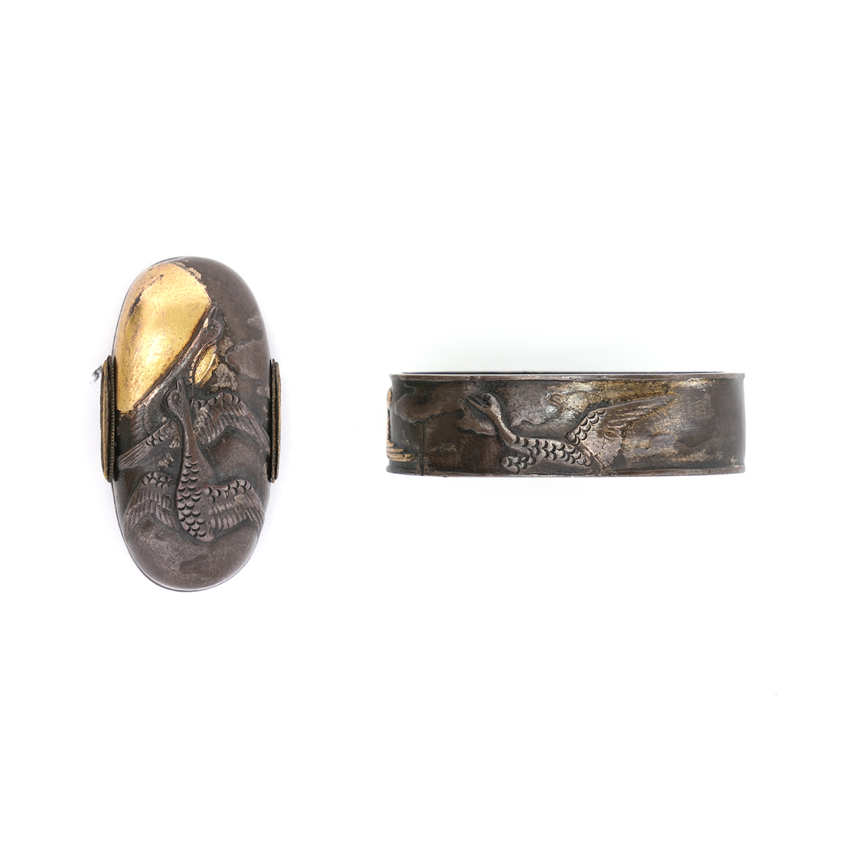 陽下雁図縁頭 無銘 -Mumei- 14-257