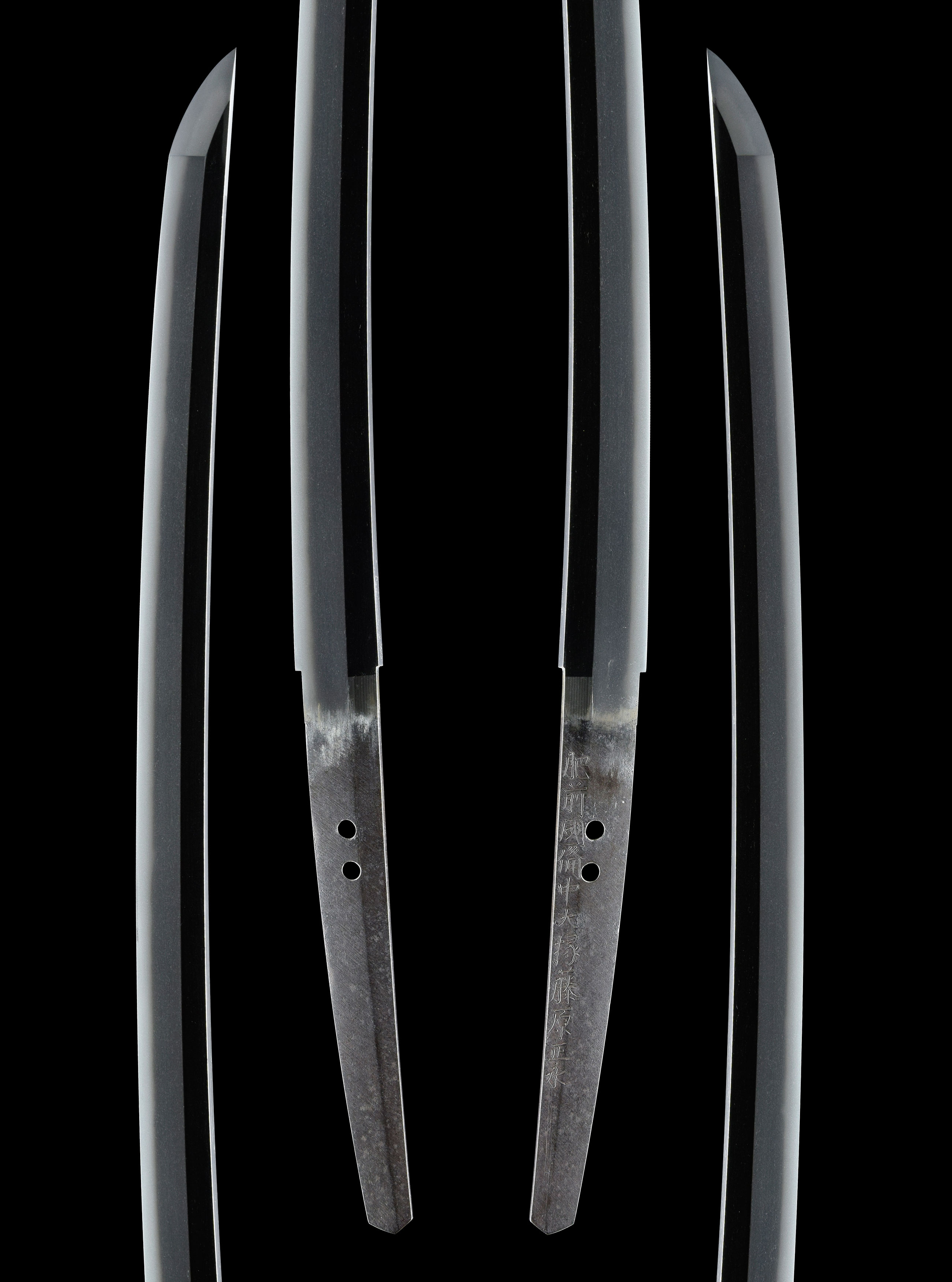 この刀は、元先の幅差頃好く開き、切先延び、地鉄は小板目が詰んで地沸微塵に厚く付き、地景細かによく入った精美な鍛えに、匂口明るく冴えた直刃を焼き上げ、刃縁に細かな砂流ごころの刃や金筋、稲妻を交え、互ノ目足入り、処々に節を見せ、鋩子は表裏共に直ぐに先丸く上品に返っており、肥前刀の代名詞である直刃を持ち合わす技量を遺憾なく発揮して鍛え上げた名作です。