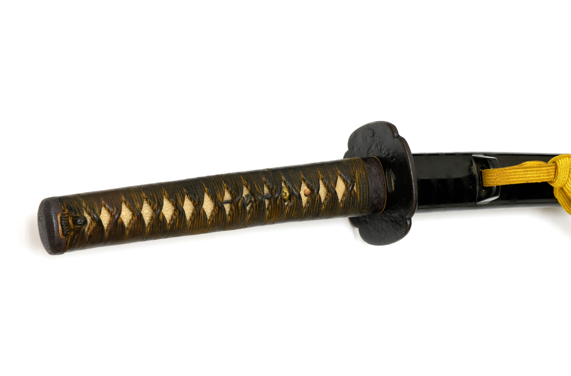 | 付属 | 素銅地金鍍金二重はばき、腰篠黒蝋塗鞘大拵 |