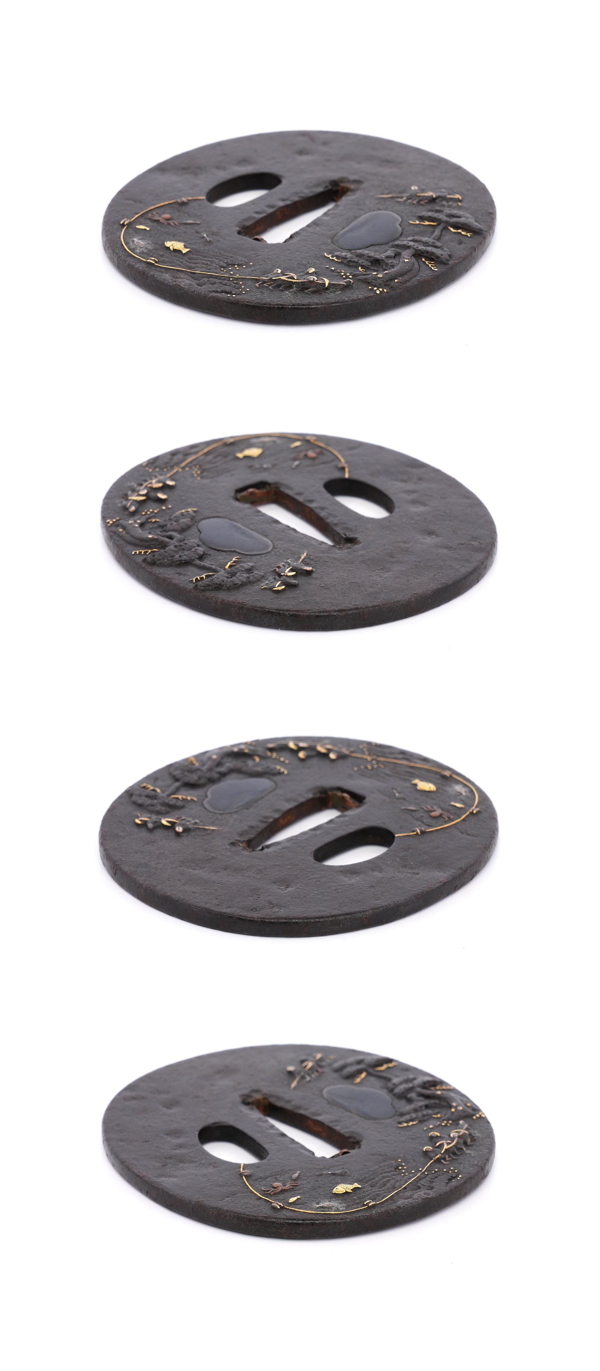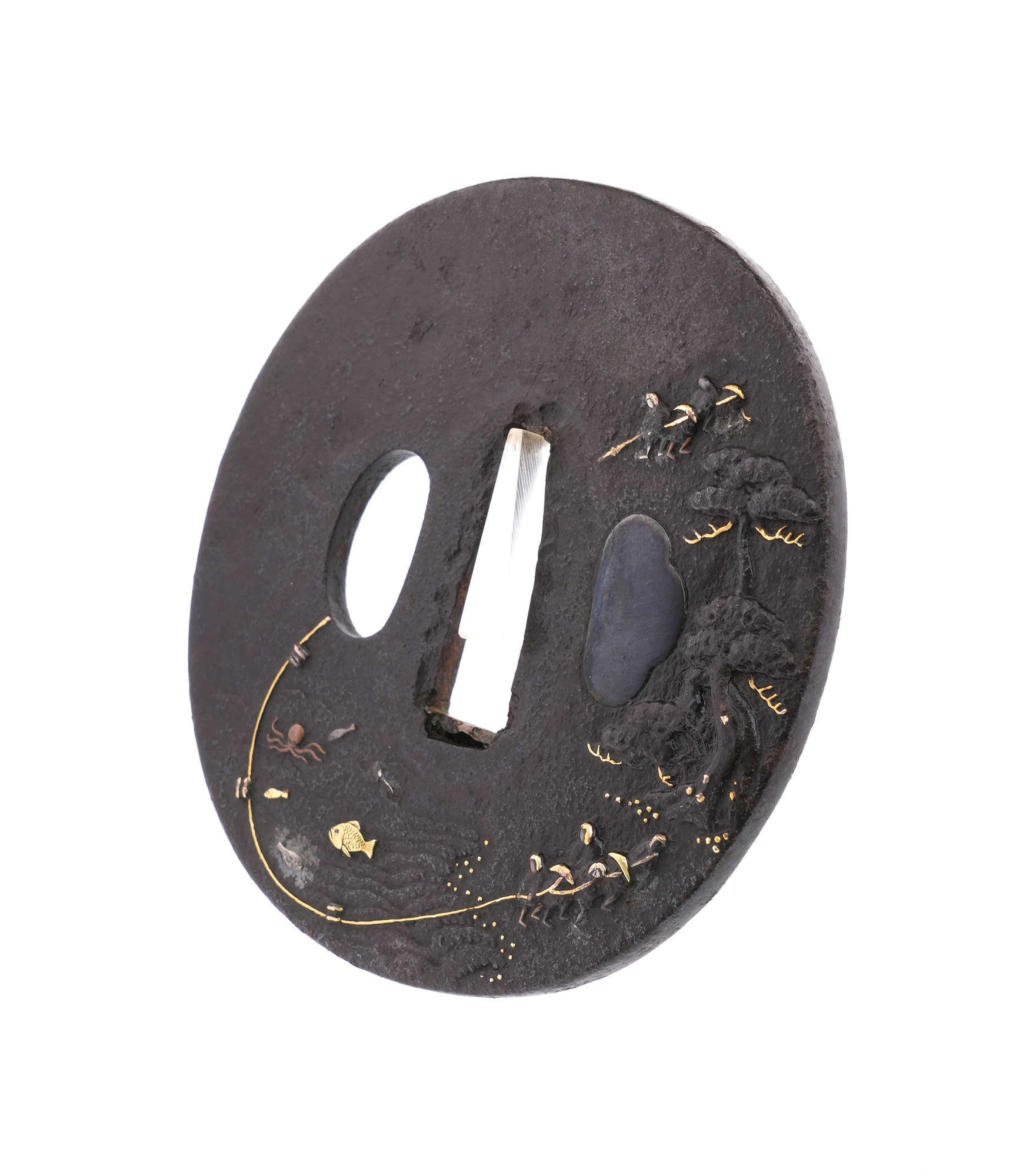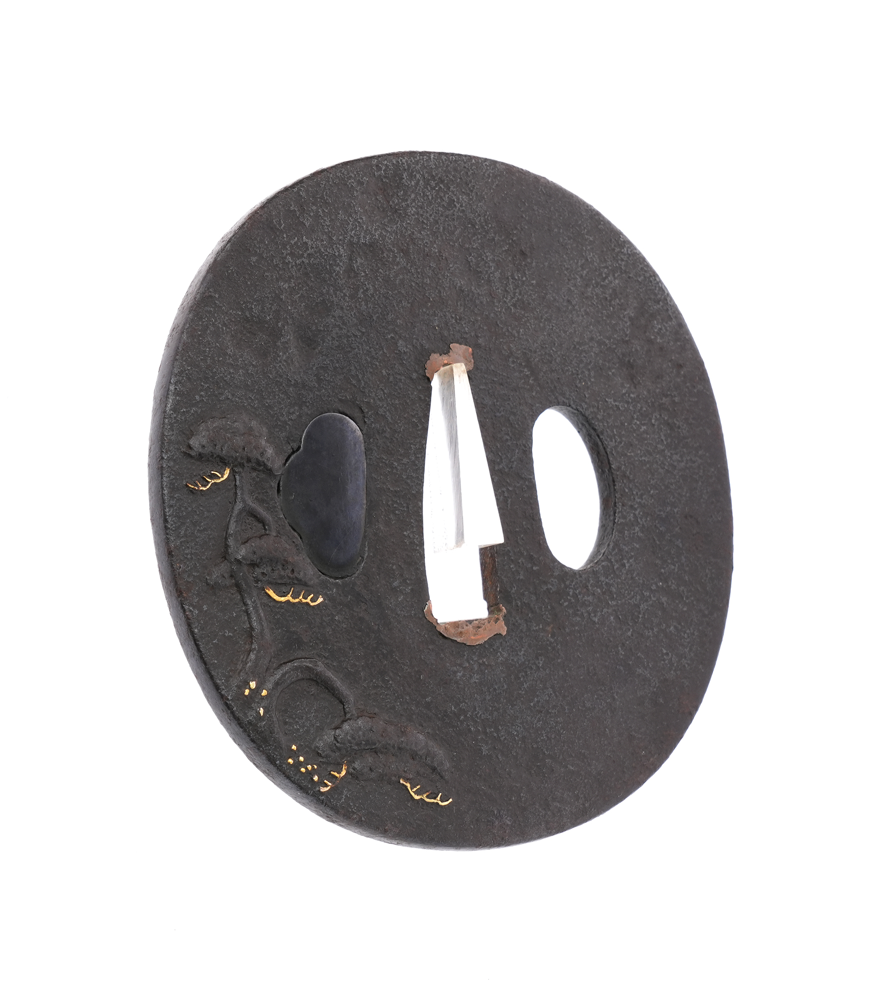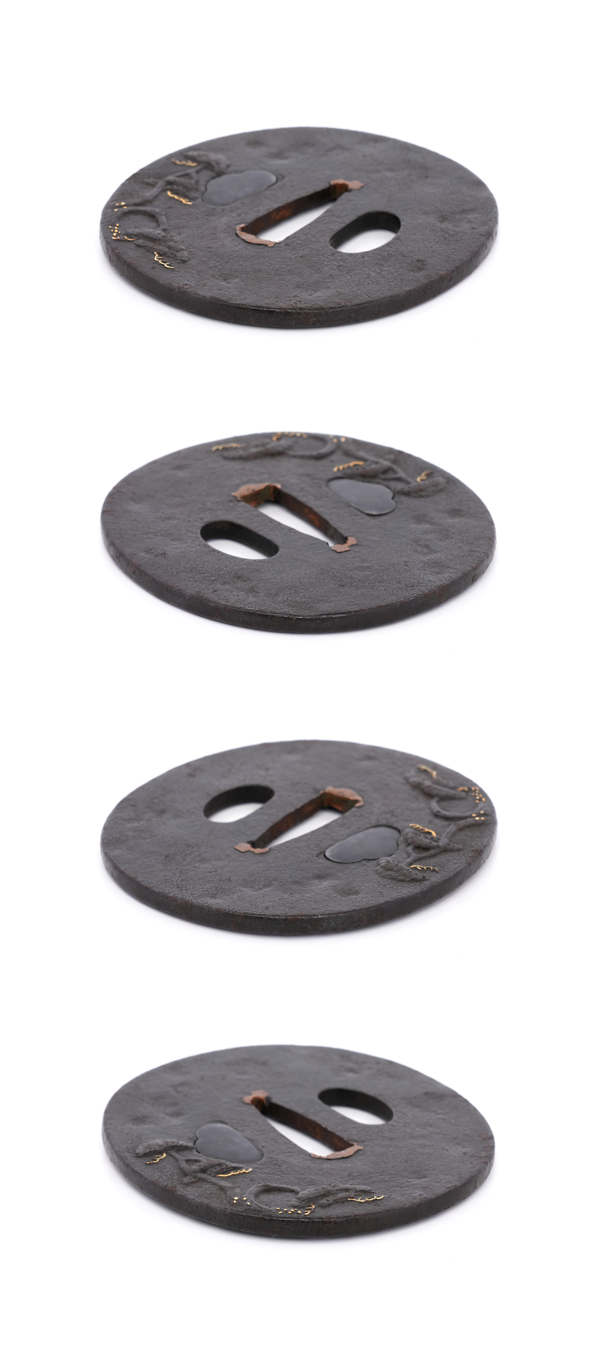 鉄地にあえて強弱ある凹凸を施すことで、浜辺に満ちる生きた空気感までを表現した鐔。