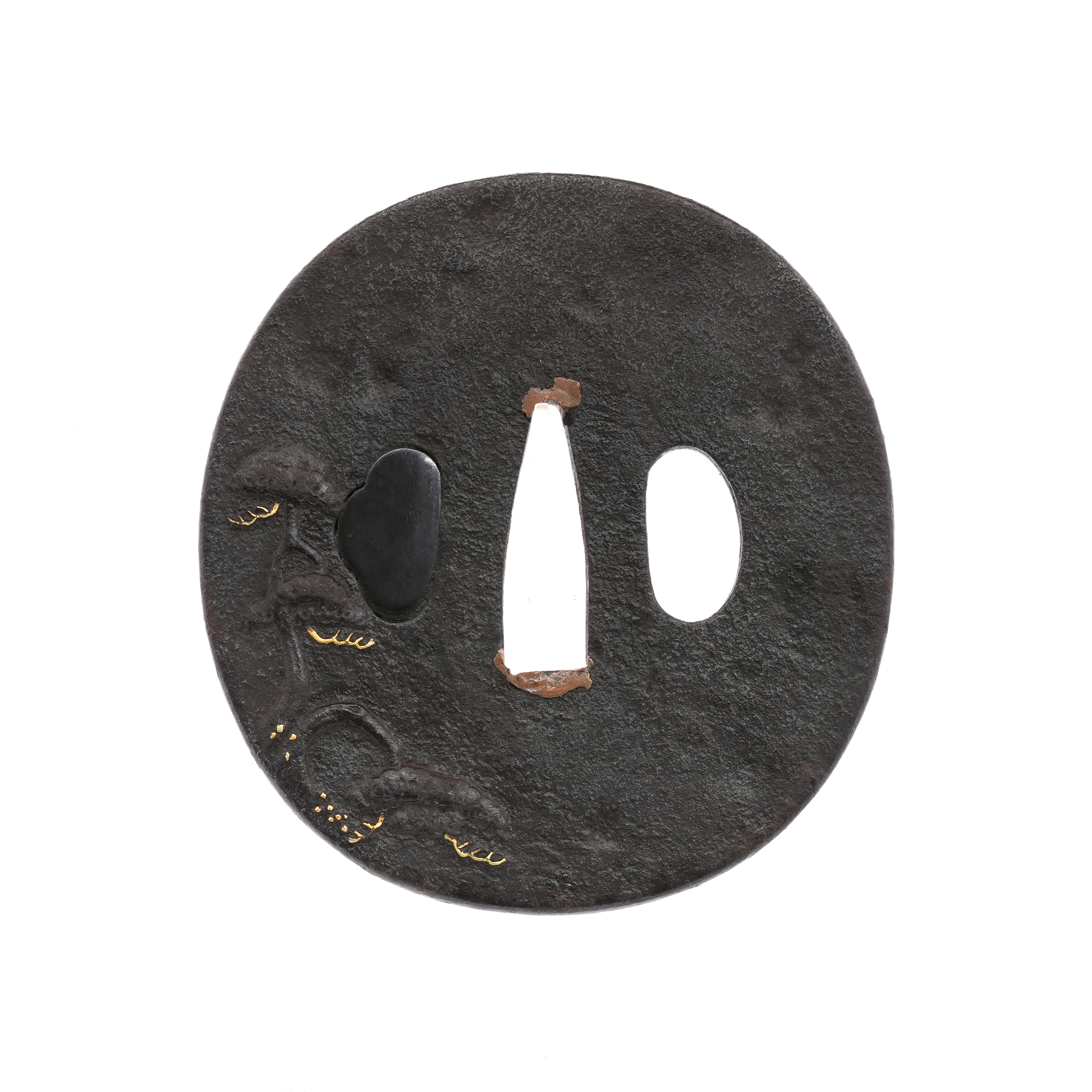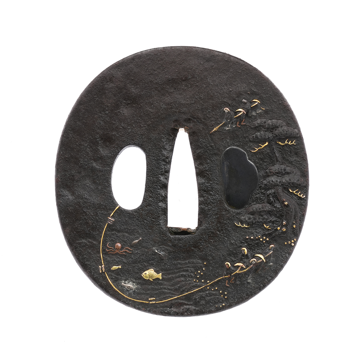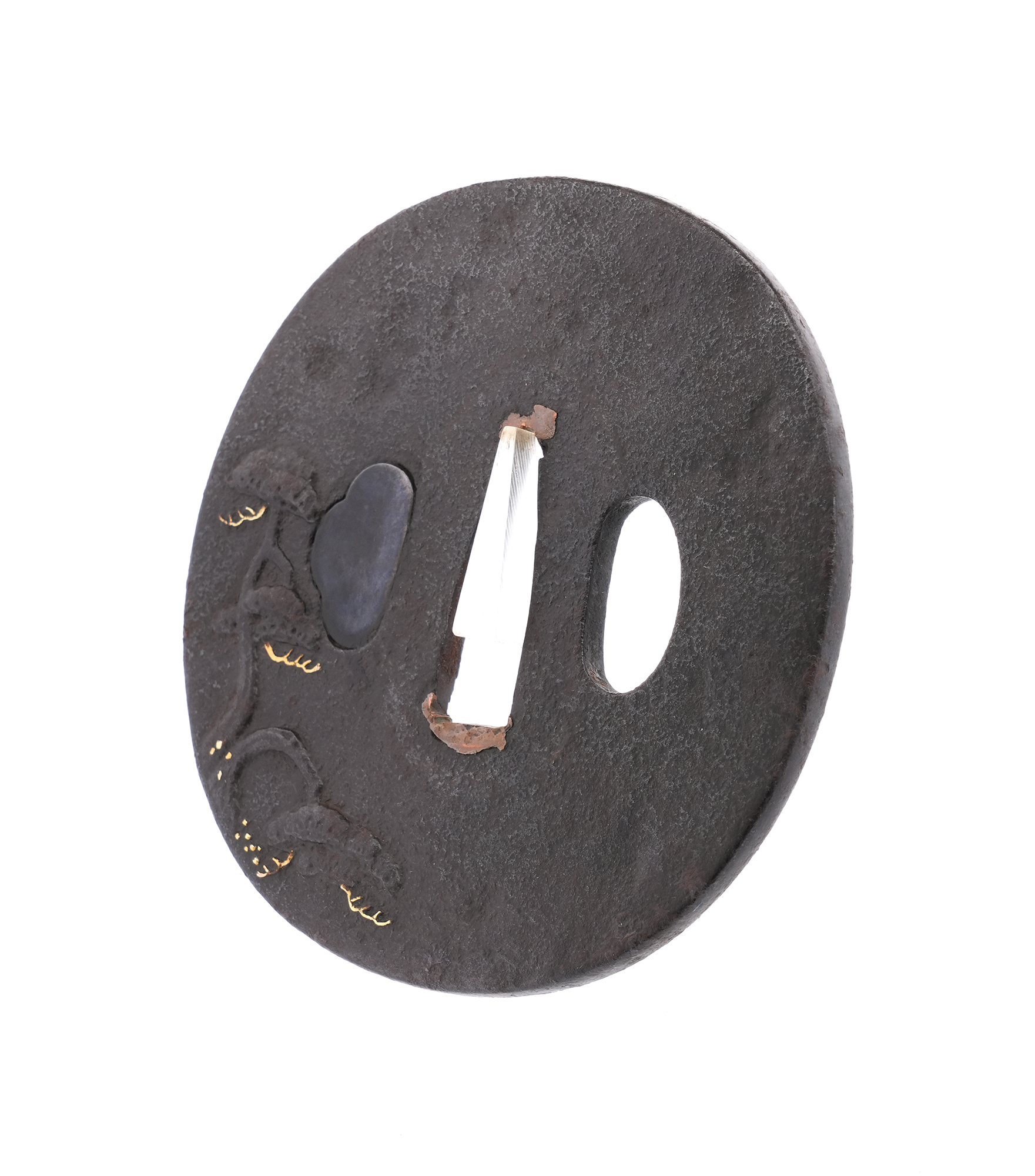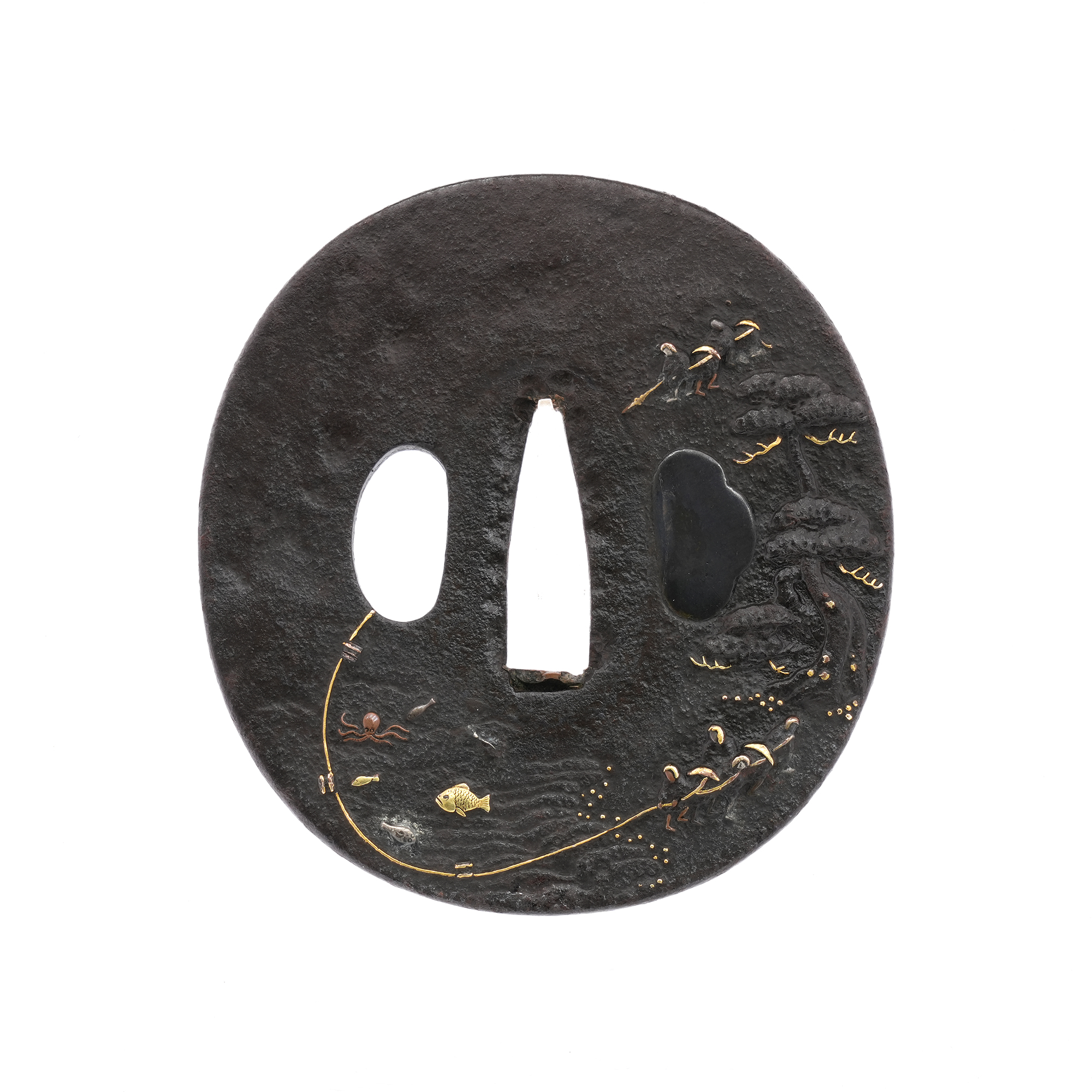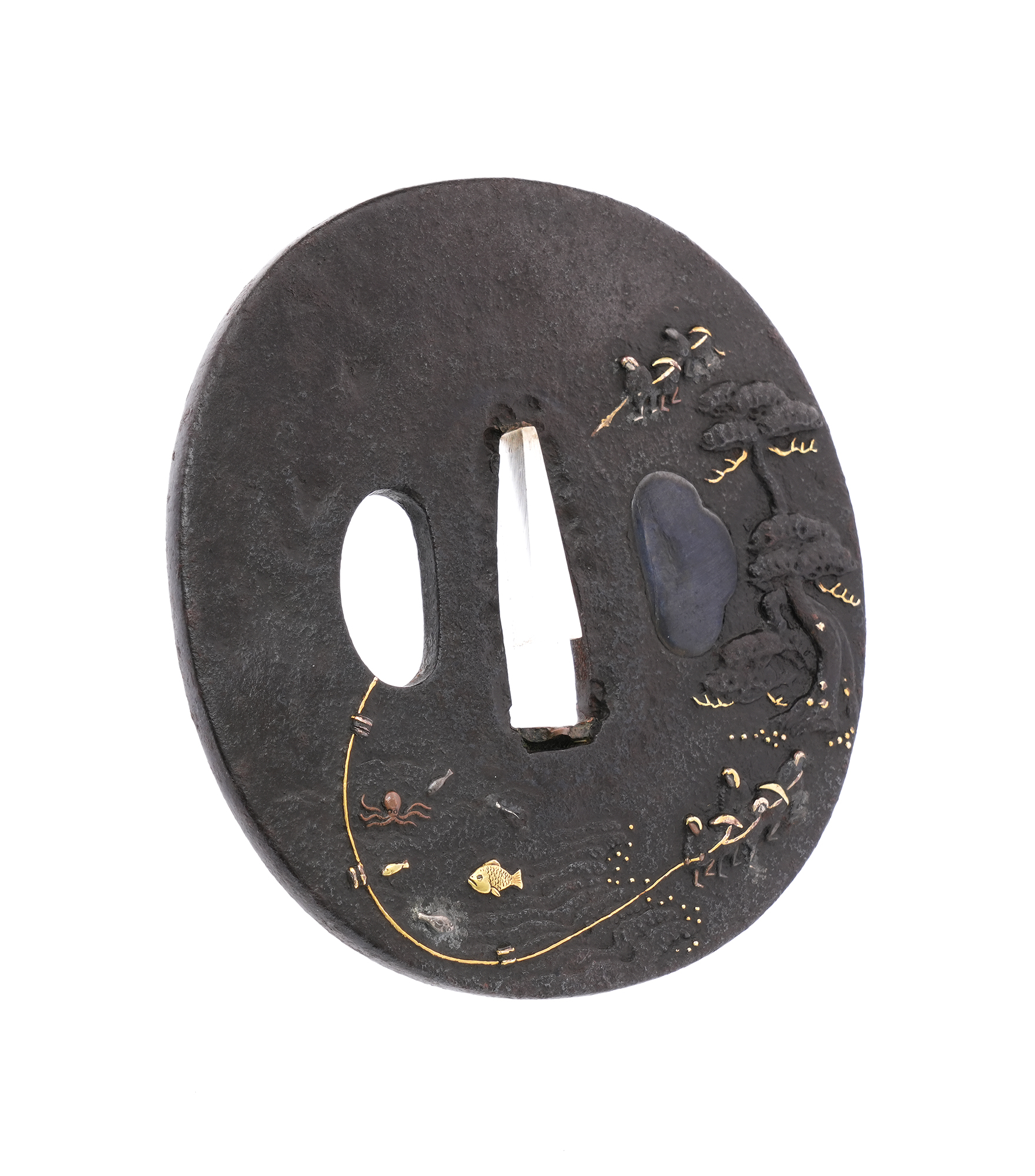 鉄地にあえて強弱ある凹凸を施すことで、浜辺に満ちる生きた空気感までを表現した鐔。