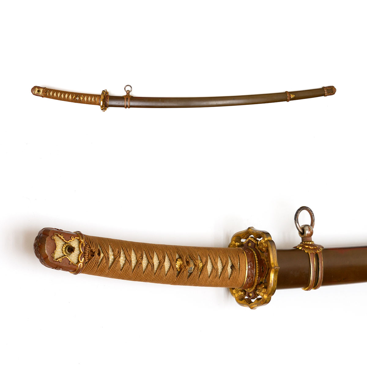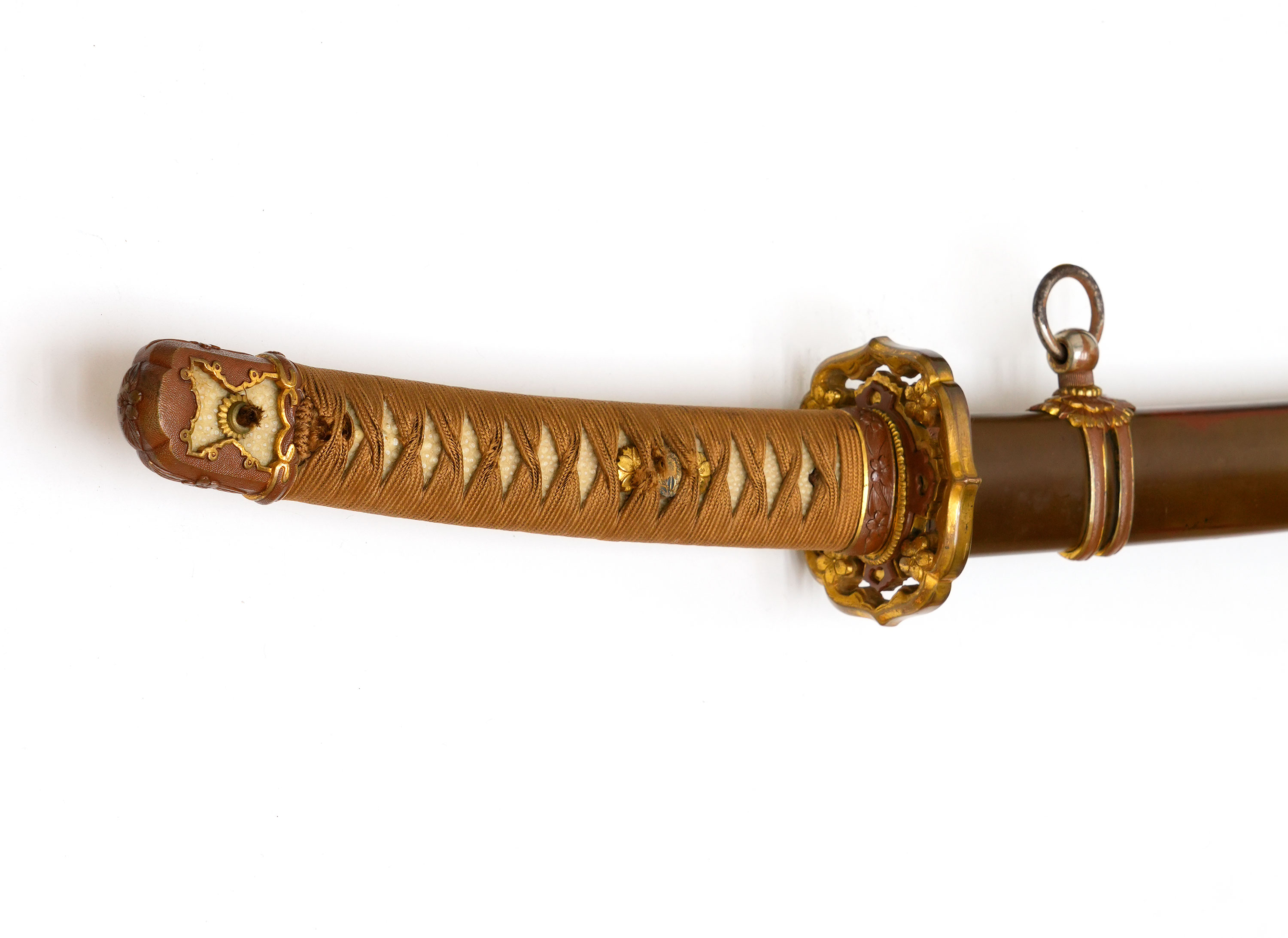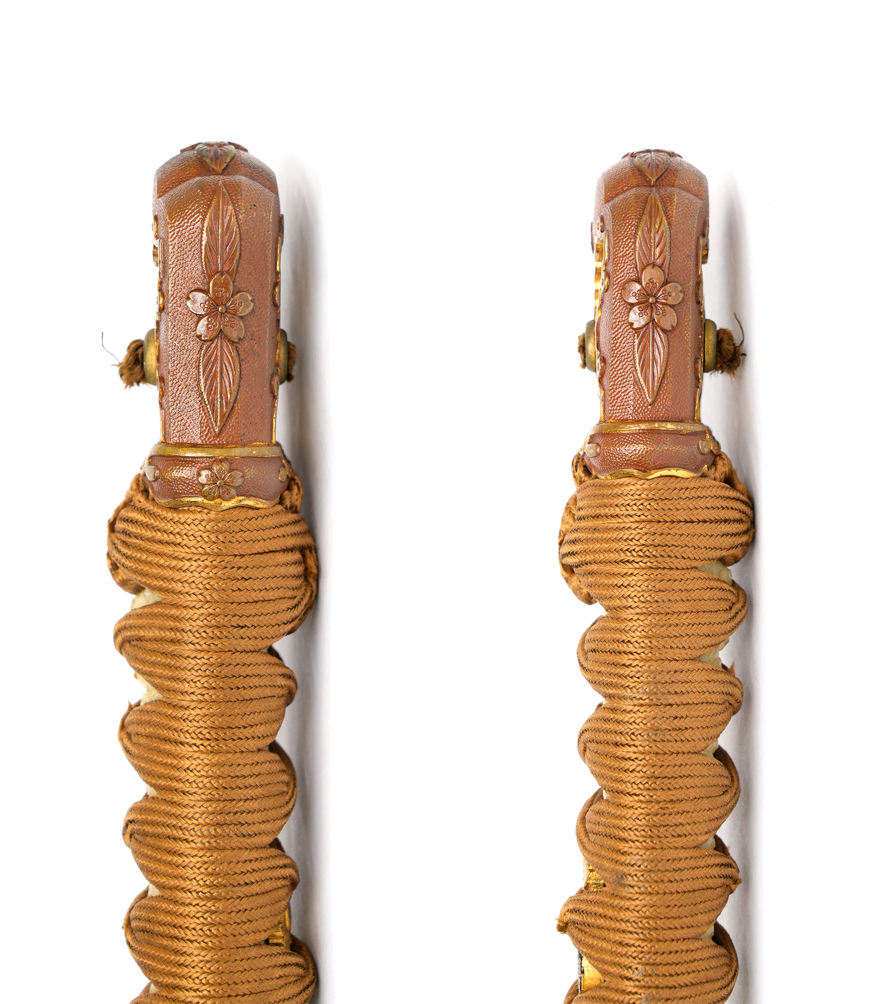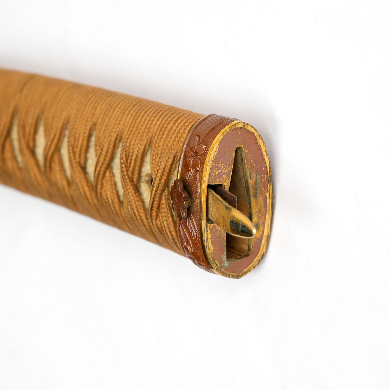 鐺金具の桜花葉には時代相応の摩耗が見られますが、実用を経た軍装品ならではの歴史の証であり、本物であることを雄弁に物語る要素といえるでしょう。総体としてのコンディションは良好で、現存数の少ない初期型としては非常に恵まれた状態です。